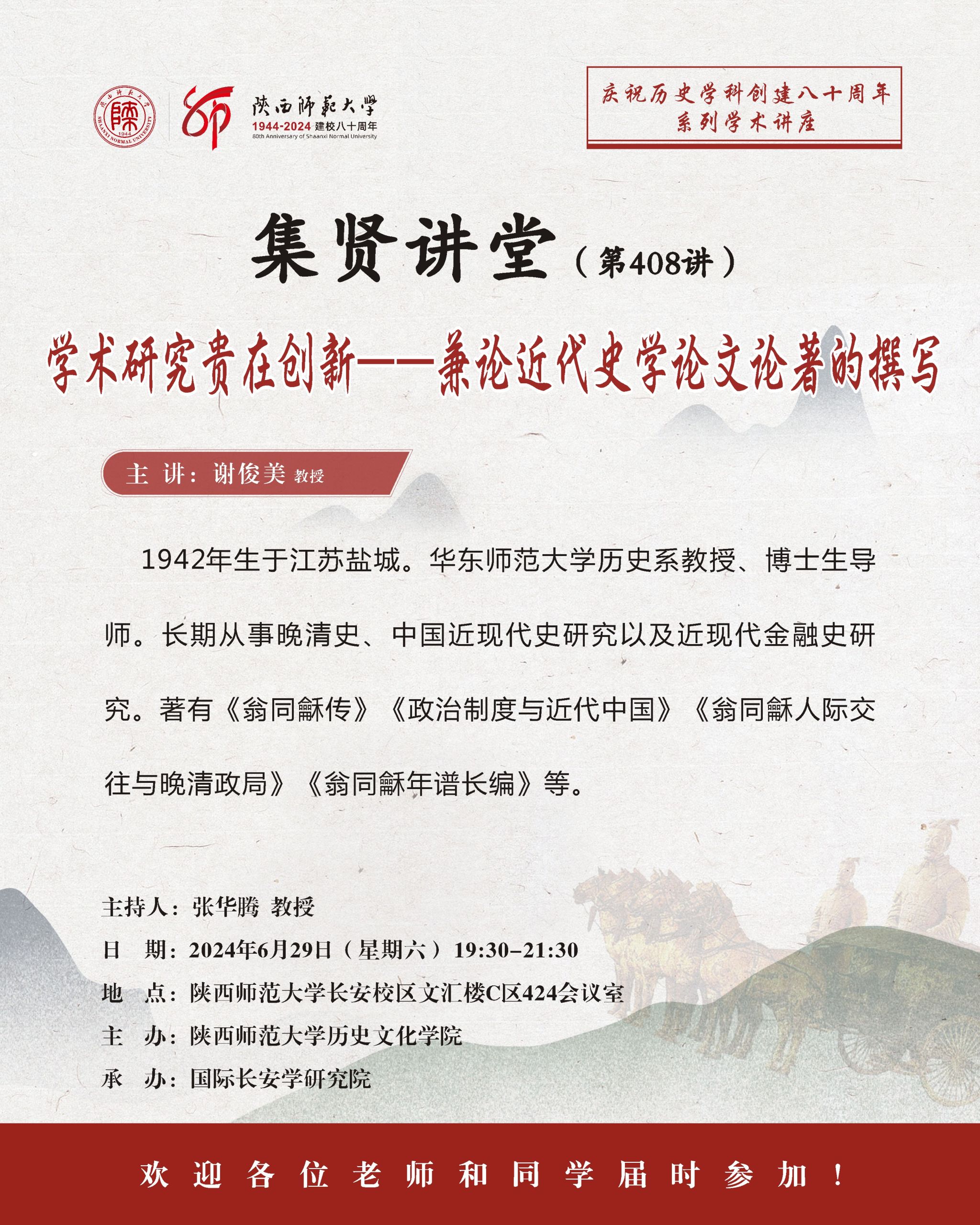 集贤讲堂第408讲:学术研究贵在创新——兼论近代史学位论文论著的撰写