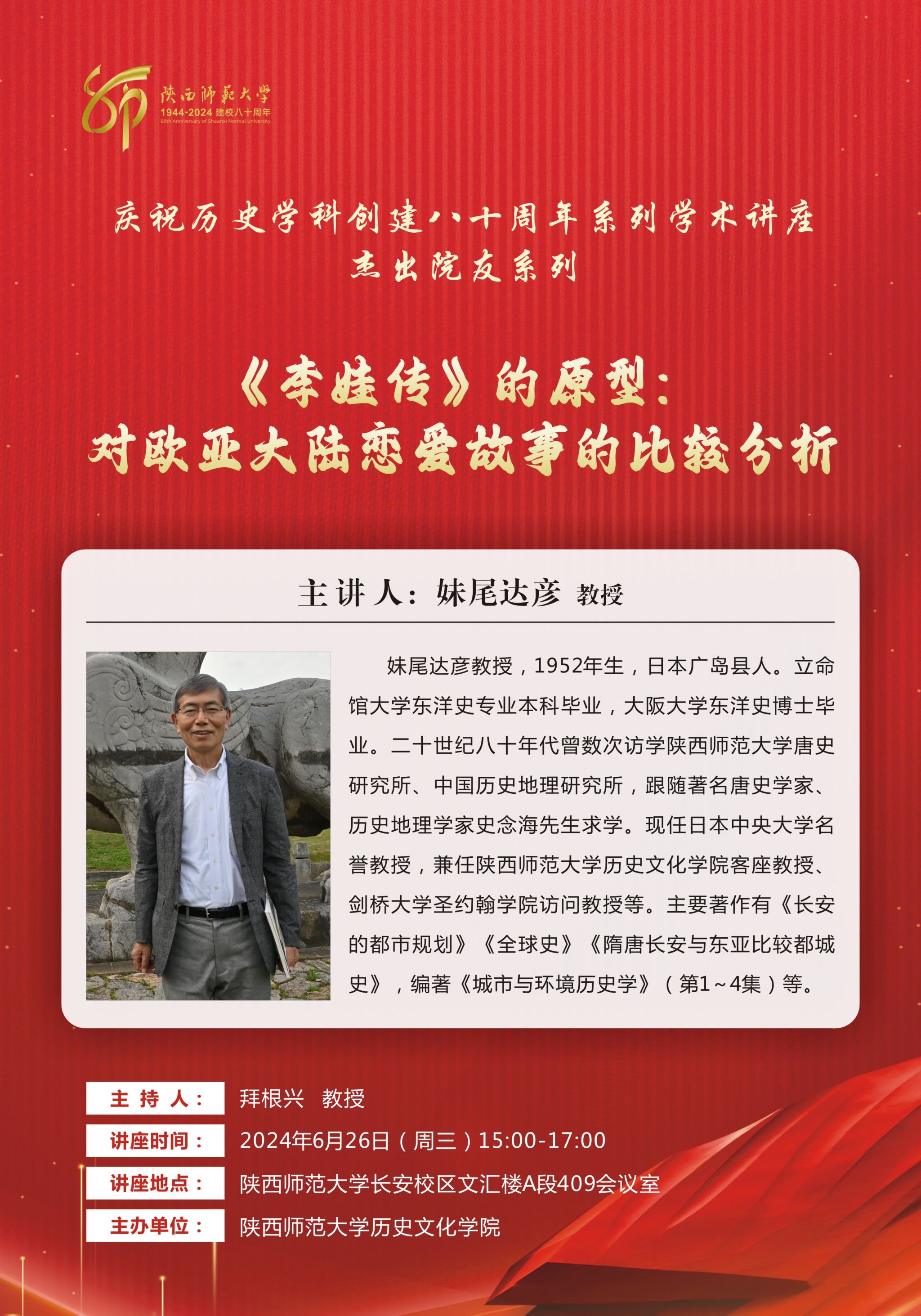 庆祝历史学科创建八十周年系列学术讲座杰出院友系列:《李娃传》的原型——对欧亚大陆恋爱故事的比较分析