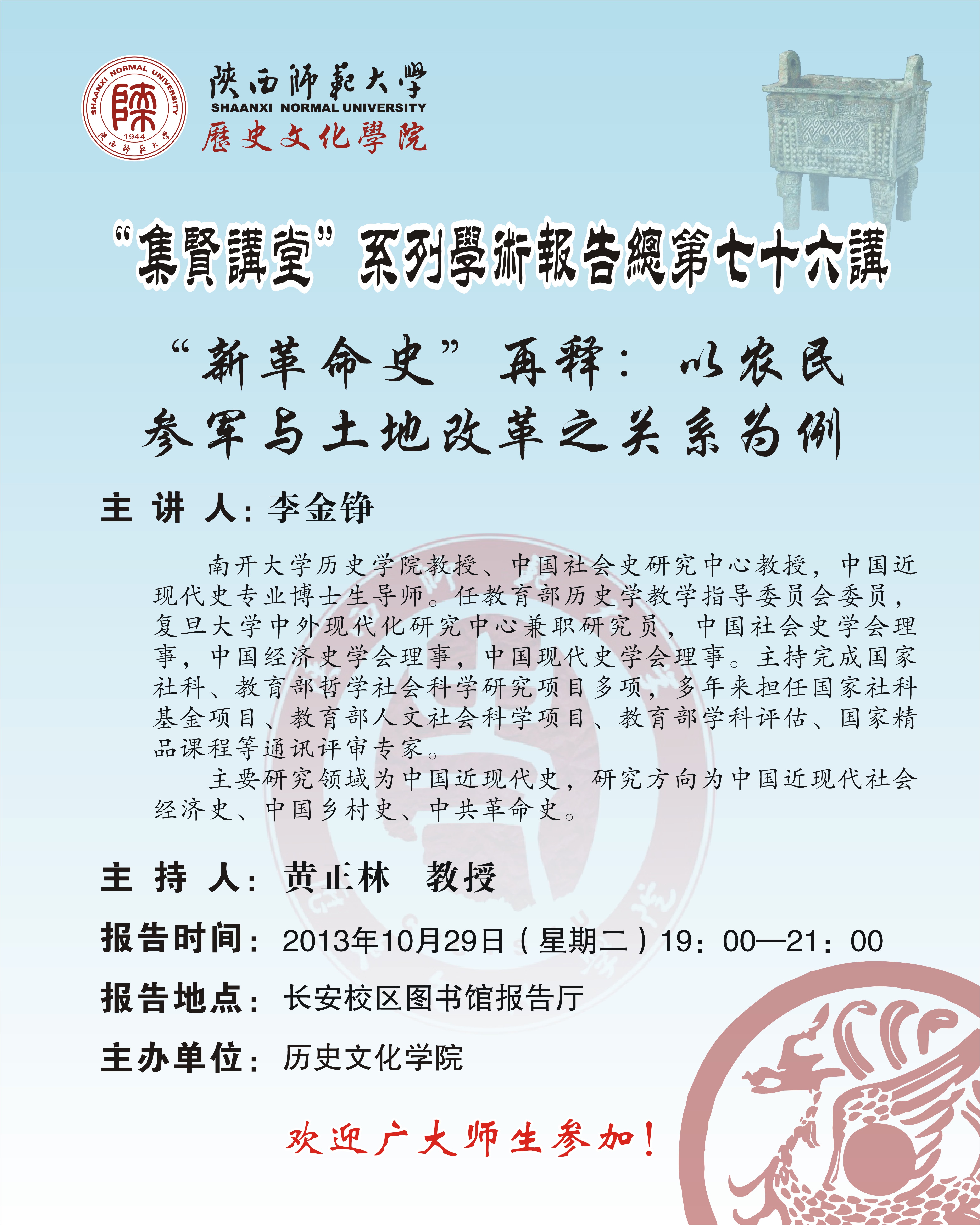 集贤讲堂总第076讲:“新革命史”再释:以农民参军与土地改革之关系为例
