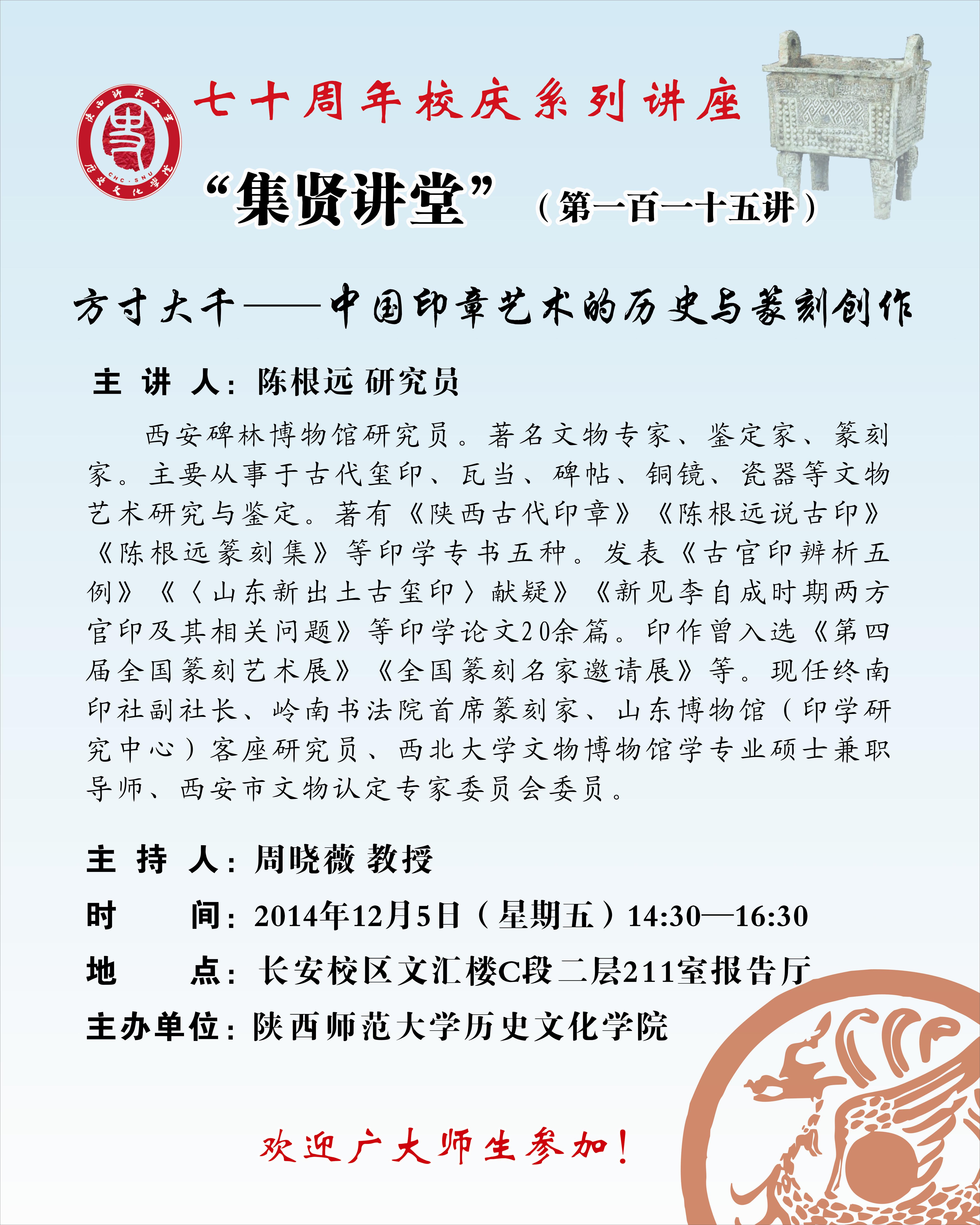 集贤讲堂115讲:方寸大千----中国印章艺术的历史与篆刻创作