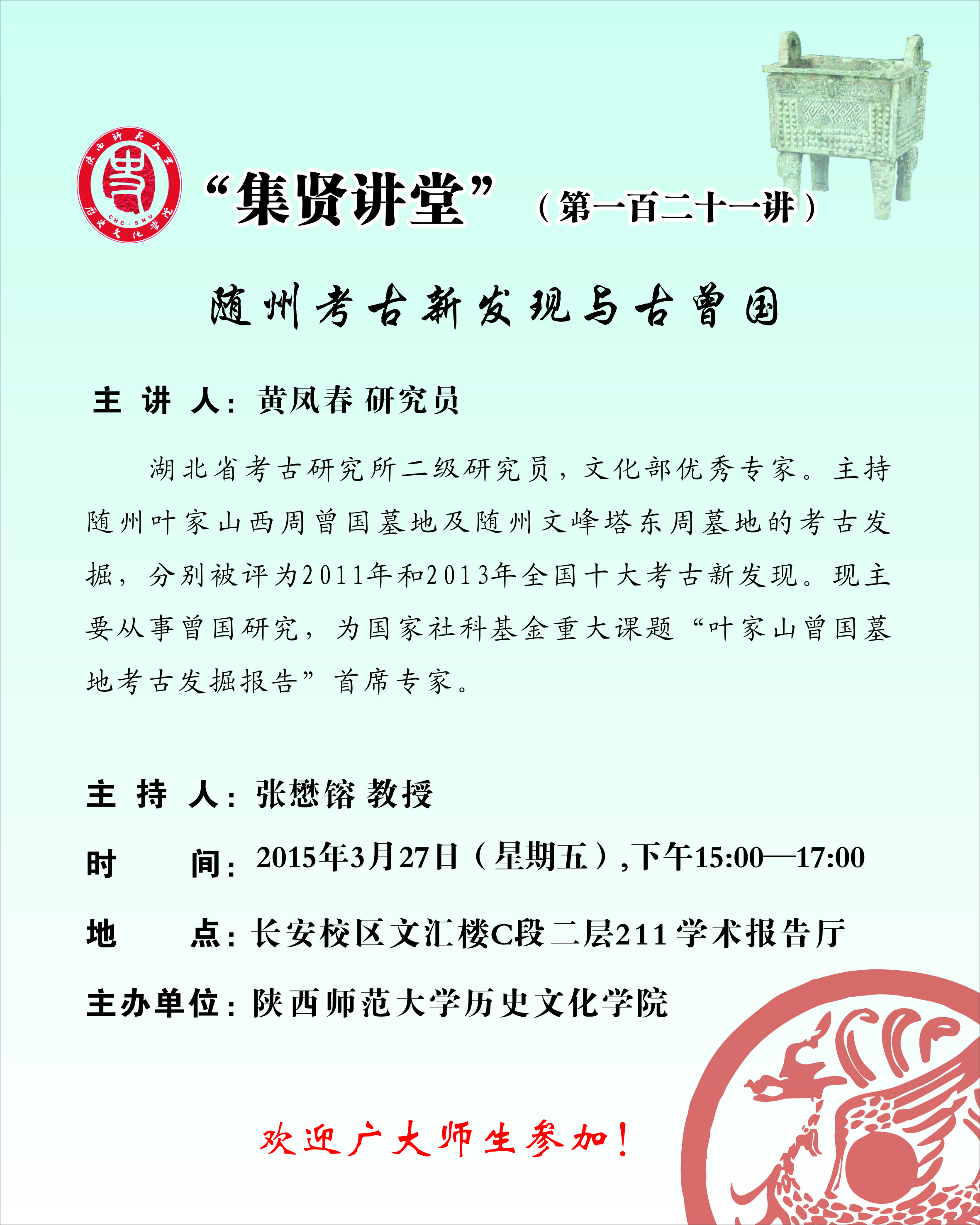 集贤讲堂第121讲预告:随州考古新发现与古曾国(黄凤春)