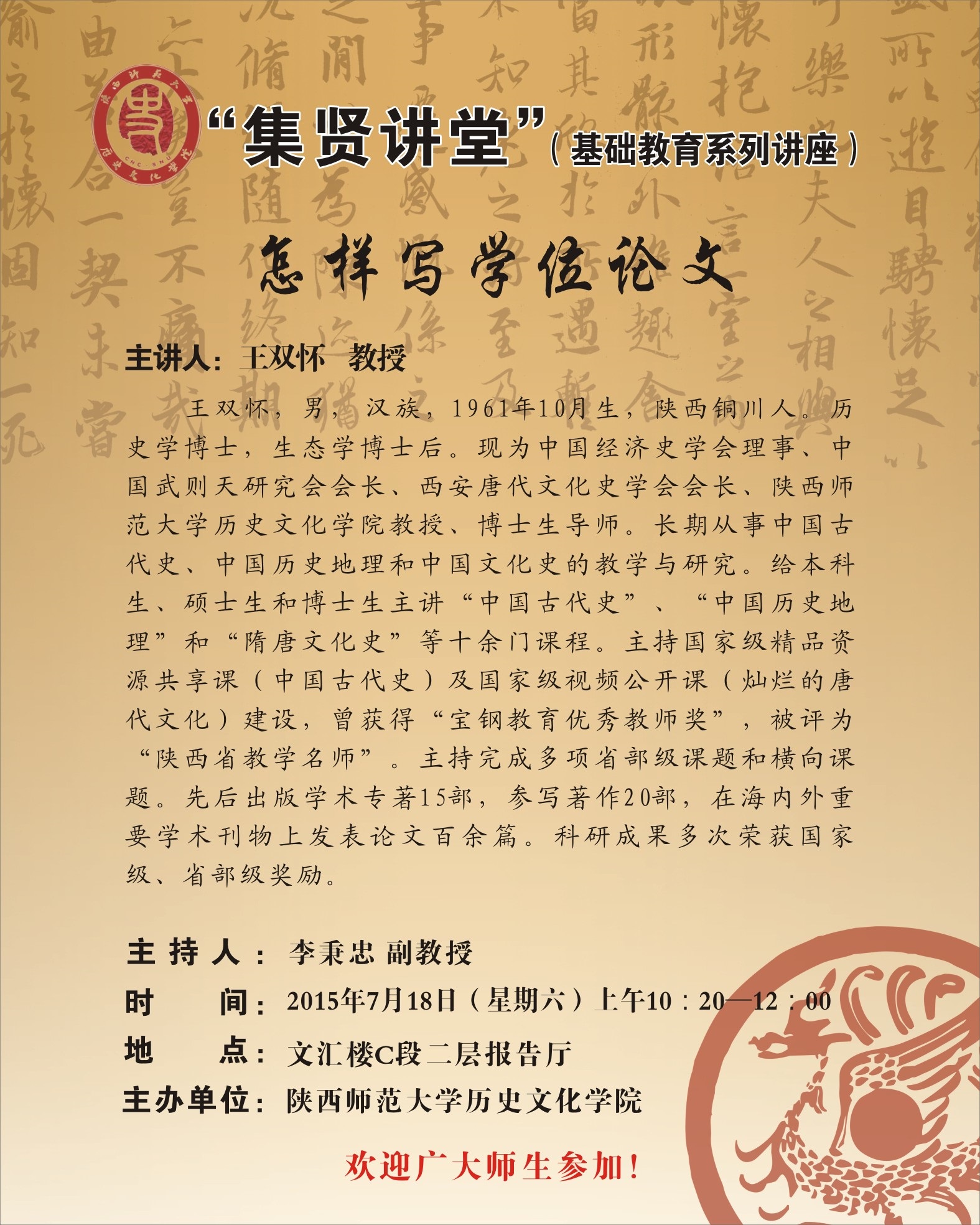 2015年“西部大讲堂·历史学论坛”隆重开幕