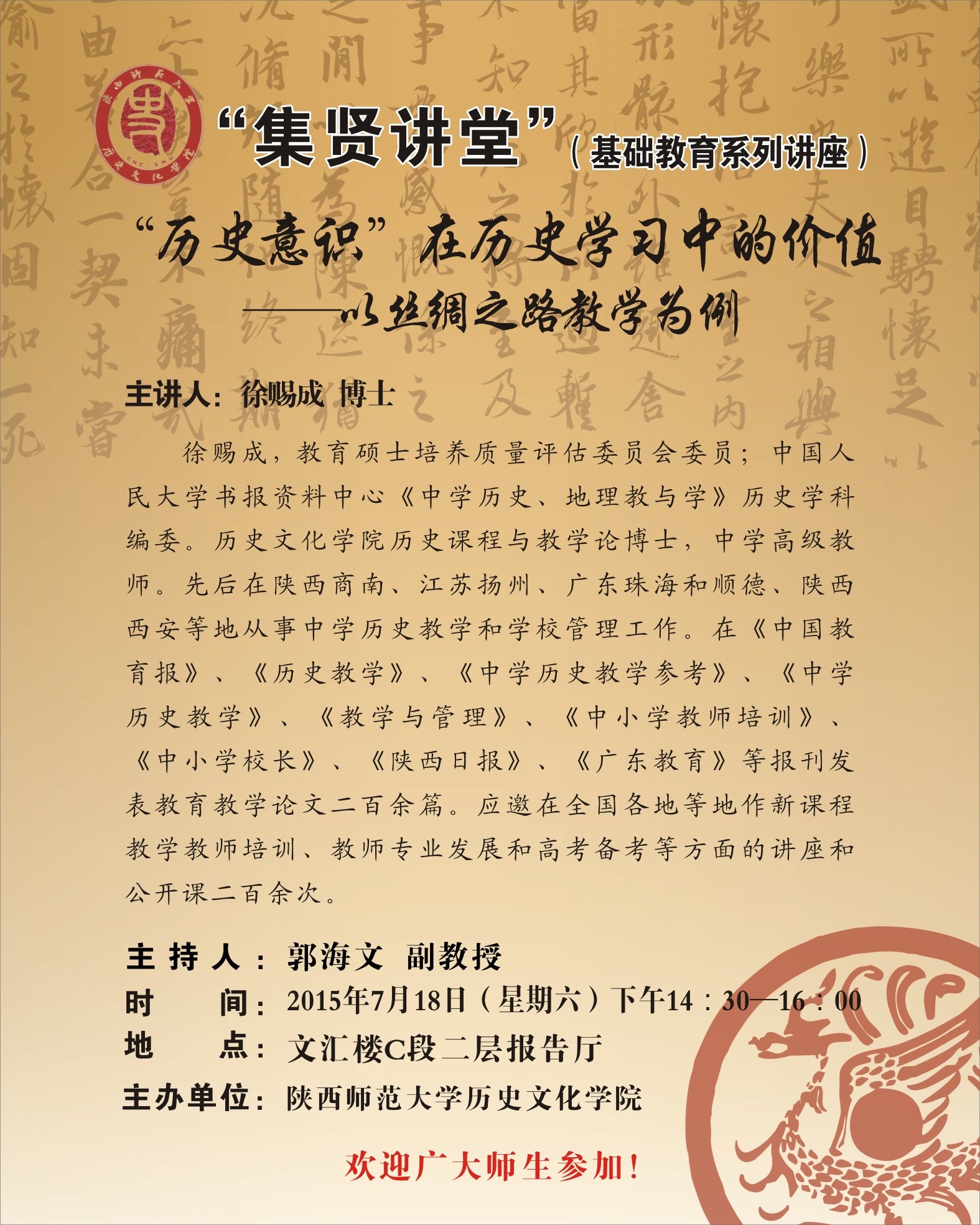 集贤讲堂(基础教育系列讲座):“历史意识”在历史学习中的价值——以丝绸之路...