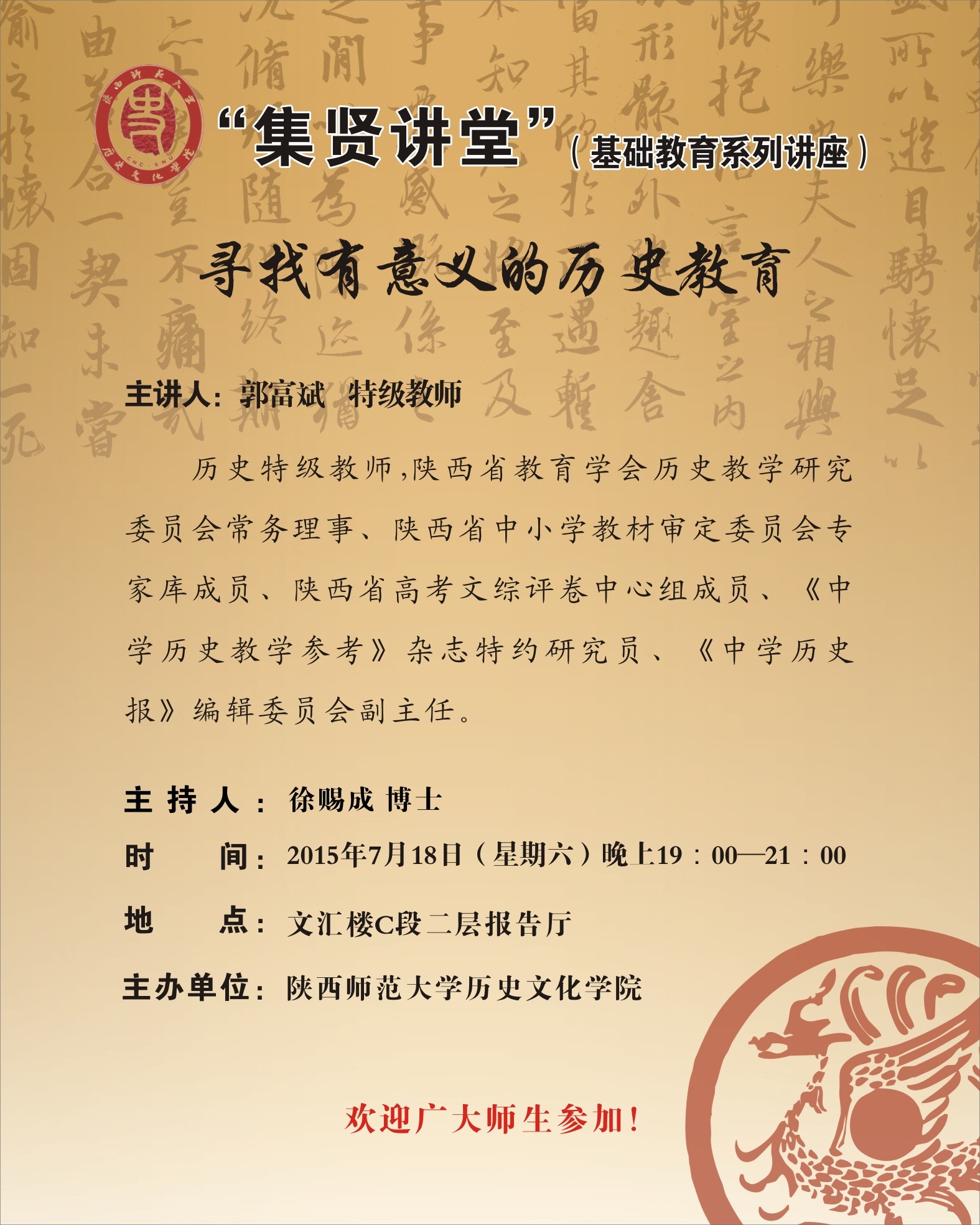 集贤讲堂(基础教育系列讲座):寻找有意义的历史教育