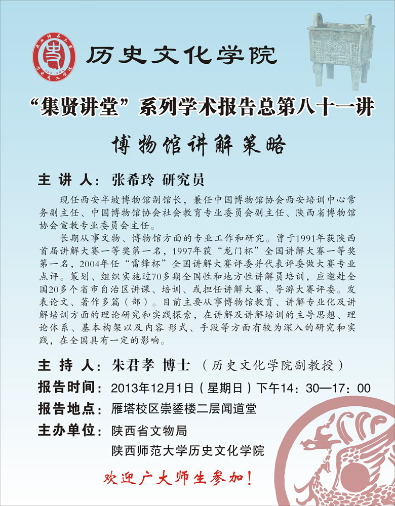 “集贤讲堂”系列学术报告总第八十一讲:博物馆讲解策略