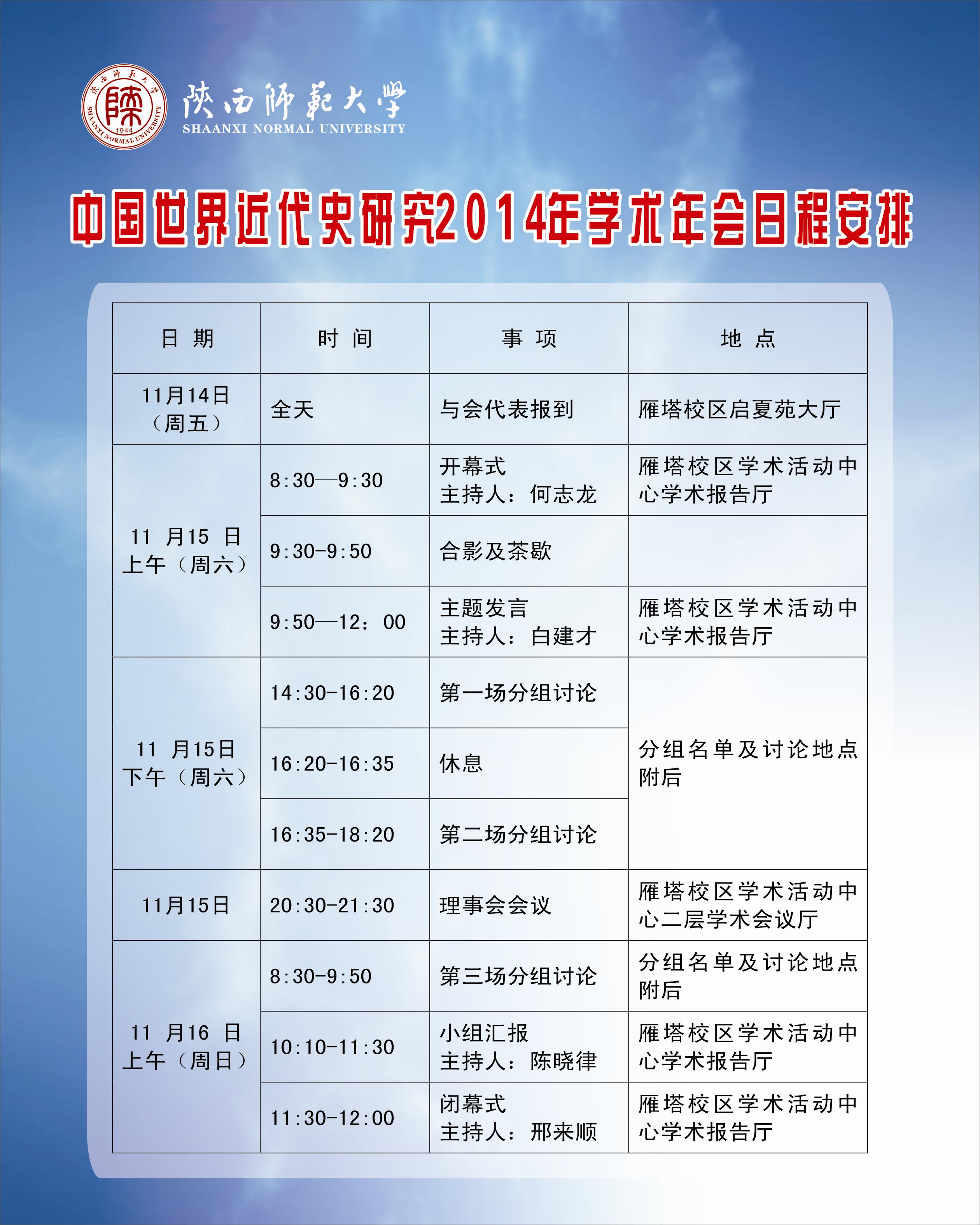世界近代史学会2014年年会会议日程