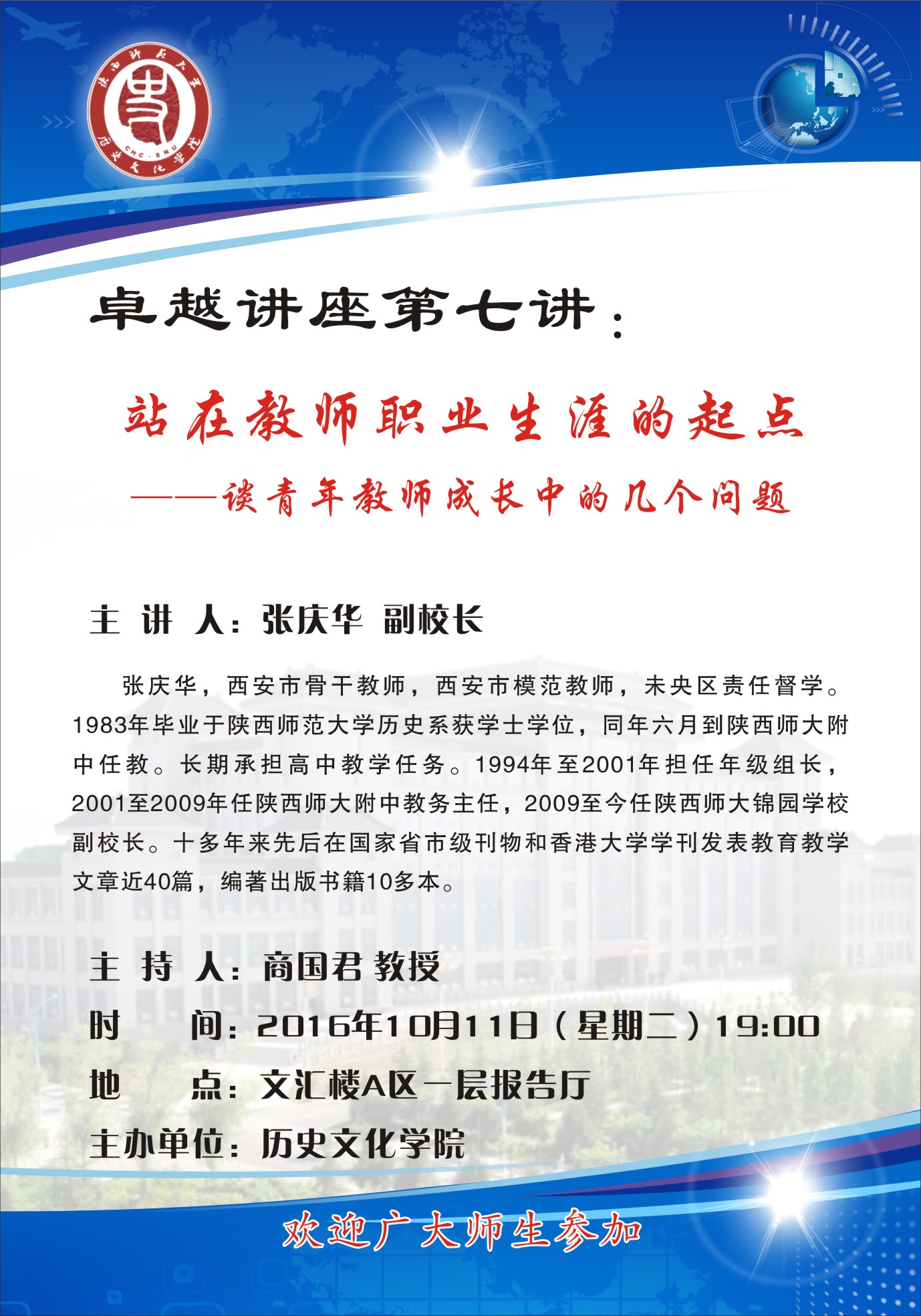 卓越讲座第7讲:站在教师职业生涯的起点 —谈青年教师成长中的几个问题