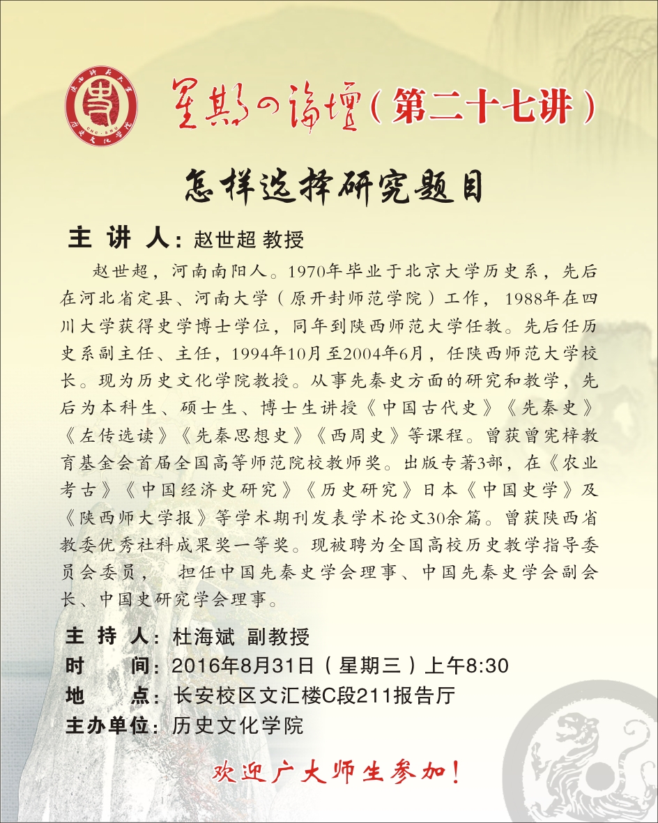 星期四论坛第27讲:怎样选择研究题目