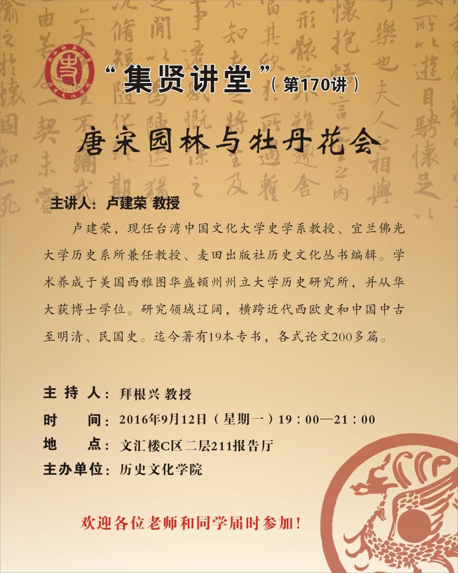 集贤讲堂第170讲:唐宋園林与牡丹花會