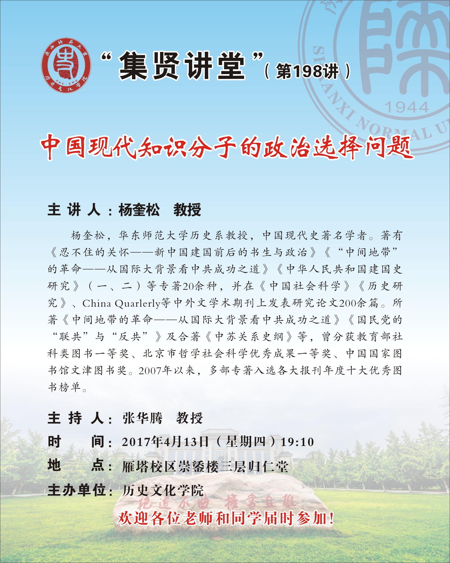 集贤讲堂第198讲:中国现代知识分子的政治选择问题