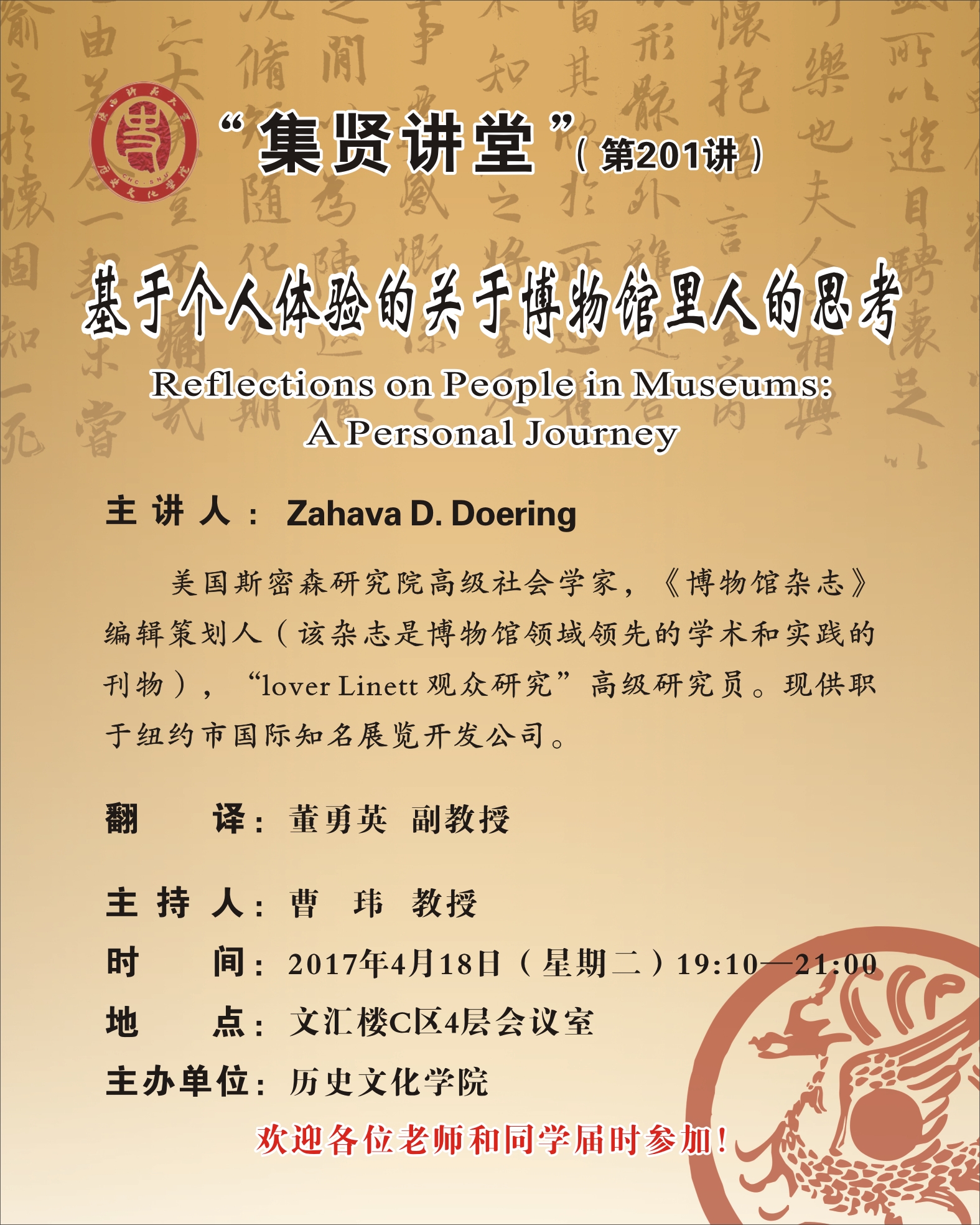 集贤讲堂第201讲:Reflections on People in Museums: A Personal Journey