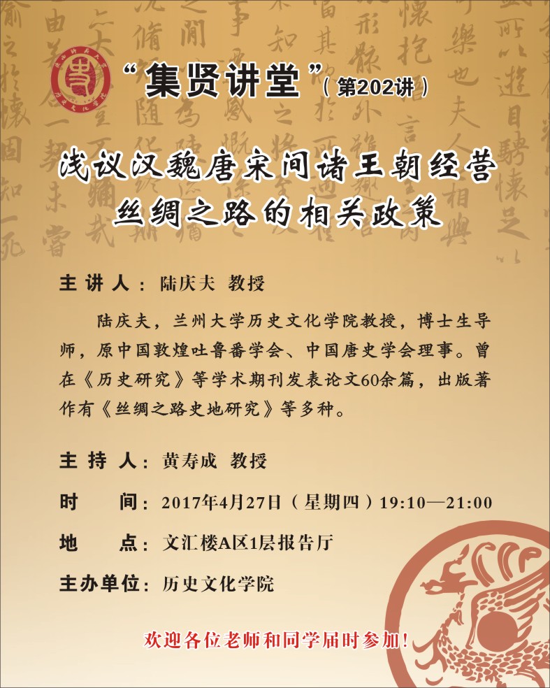 集贤讲堂第202讲:浅议汉魏唐宋间诸王朝经营丝绸之路的相关政策