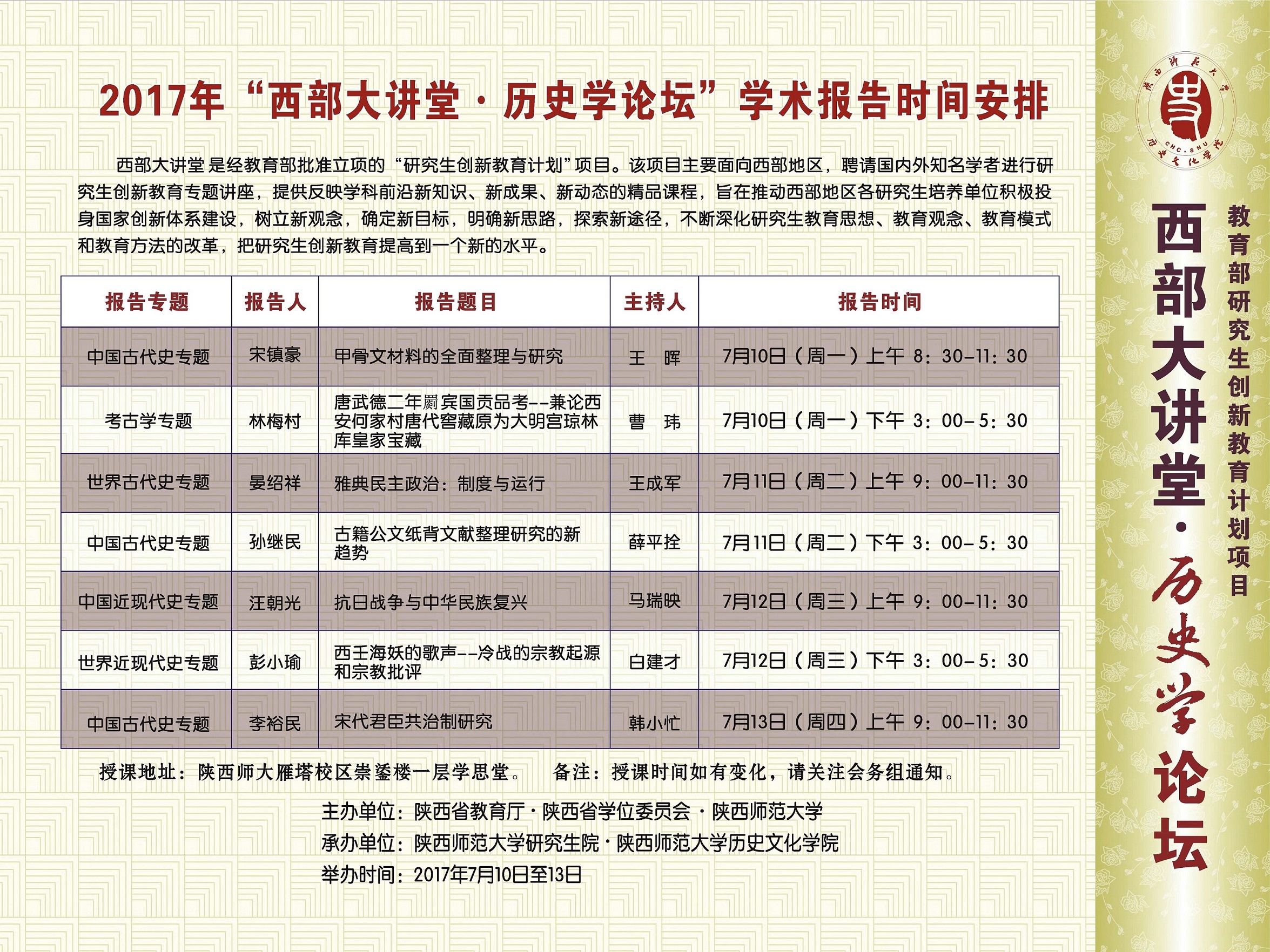 2017年“西部大讲堂·历史学论坛”通知(第二号)