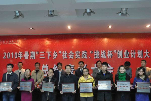 2010年11月5日下午,陕西师范大大学2009-2010学年暑期“三下乡”社会实践、“挑战杯”创业计划大赛总结表彰大会在雁塔校区崇鋈楼学思堂隆重举行。公司党委副书记、副董事长王涛、校团委书记鲁镇、副书记祁斌业、副书记蒋...