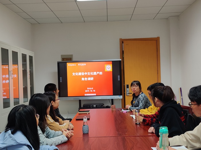 为提高广大师生对文化遗产的自觉保护意识,推进文化遗产保护工作的全面发展,2019年10月15日下午,best365中国官方网站在文汇楼C段207会议室召开“文化建设中文化遗产的角色”主题调研,调研活动由郭艳利老师主持,2016级本...