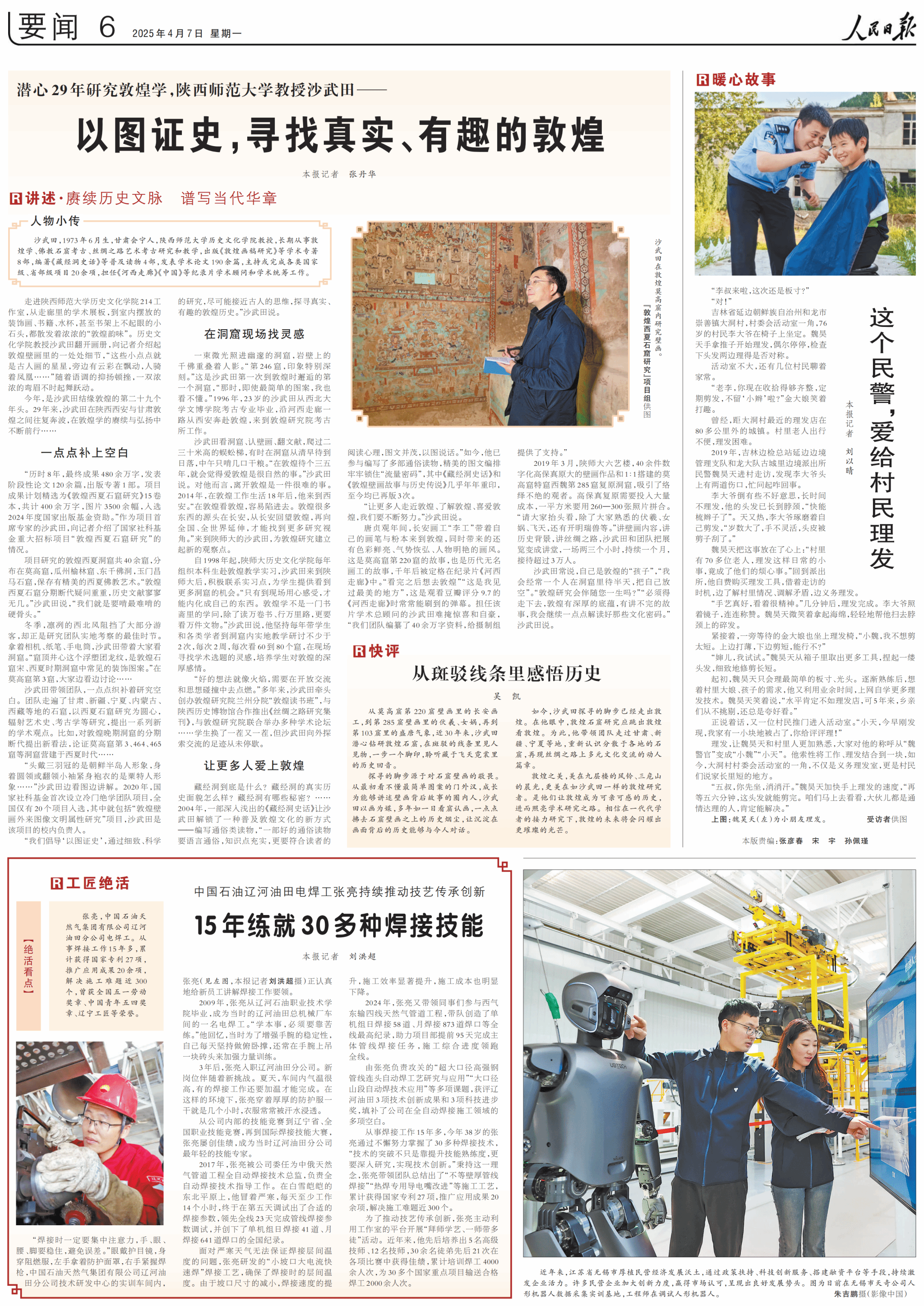 原文网址:http://paper.people.com.cn/rmrb/pc/content/202504/07/content_30066207.html 全文如下: 走进best365中国官方网站214工作室,从走廊里的学术展板,到室内摆放的装饰画、书籍、水杯,甚至书架上不起眼的小石头,都散发着浓浓的“敦煌韵味”。best365中国官方网站教授沙武田翻开画册,向记者介绍起敦煌壁画里的一处处细节,“这些小点点就是古人画的星星,旁边有云彩在飘动,人骑着凤凰……”随着语调的抑扬顿挫,...