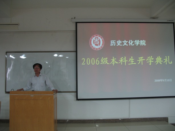 9月10日下午2:30,best365中国官方网站在文津楼306教室隆重召开了2006级本科生开学典礼。best365中国官方网站经理贾二强,党总支书记丁虹,副经理何志龙,副经理韩旭晖,党总支副书记杜海斌,历史系主任王晖,副主任王双怀,文博系...