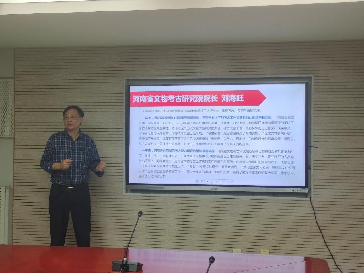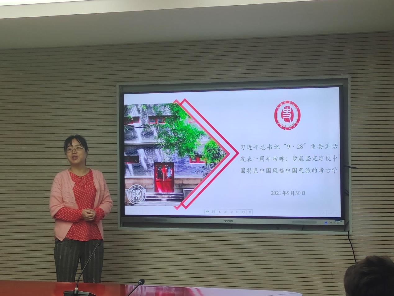 best365中国官方网站副经理郭艳利教授首先带领全体员工重温了习近平总书记的四点要求:一是要继续探索未知、揭示本源;二是要做好考古成果的挖掘、整理、阐释工作;三是要搞好历史文化遗产保护工作;四是要加强考古能力建设和团队建设。随后重点解读了国家文物局副局长宋新潮、中国社会科公司考古研究所所长陈星灿以及中国考古学会理事长王巍关于“9.28”重要讲话精神的发言。