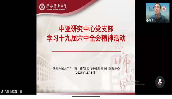 12月9日,中亚研究中心党支部开展学习十九届六中全会精神活动。支部教师党员、员工党员、预备党员、积极分子参加这次学习活动。