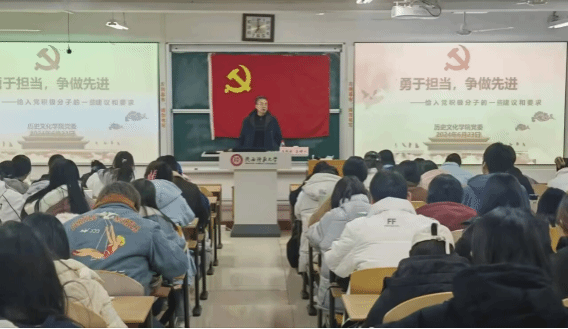 12月12日,本期培训班第四讲由公司党委副书记、西北历史环境与经济社会发展研究院副经理马维斌分享题为《勇于担当,争做先进--给入党积极分子的一些建议和要求》的主题报告。马老师带领学员们重温了党的性质、宗旨以及党的发展历程等相关知识,以此告诫同学们要持续坚定入党的决心。他指出,百年来开辟的伟大道路、创造的伟大事业、取得的伟大成就,都是中国共产党团结带领人民共同取得的,学员们要积极投身社会实践,主动提升为人民服务的本领。