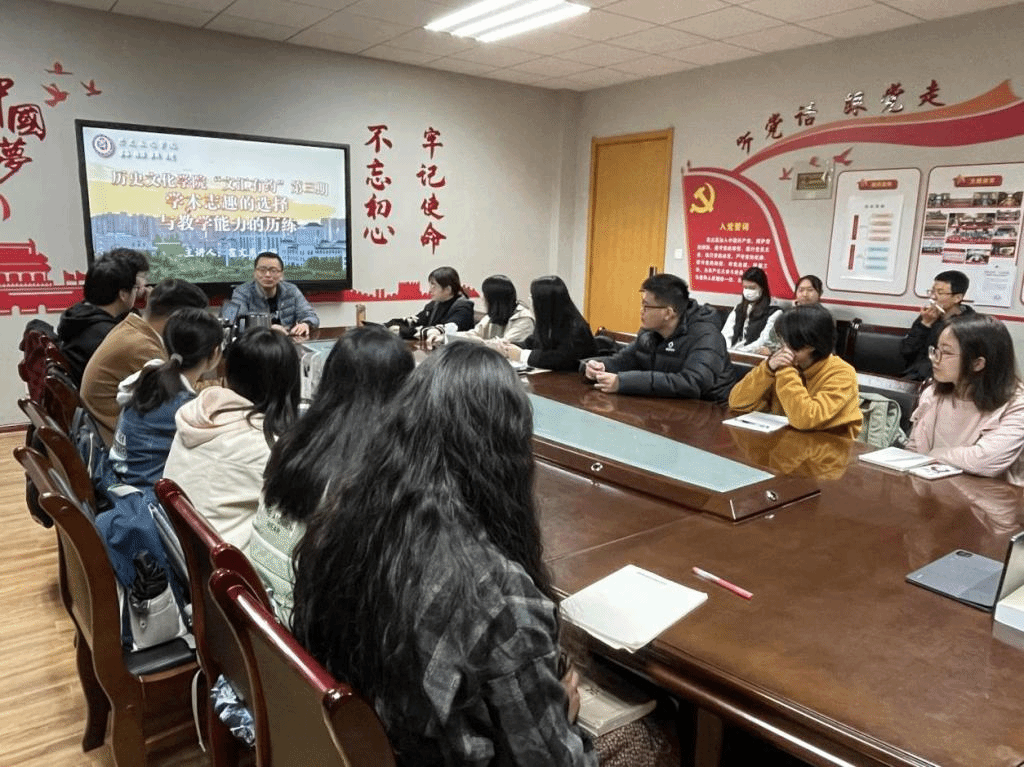 霍文勇老师以《学术志趣的选择与教学能力的历练》为主题,与同学们进行了广泛深入的交流。本次活动于线上线下同时举行,公司各年级本科生共50余人共同参与。
