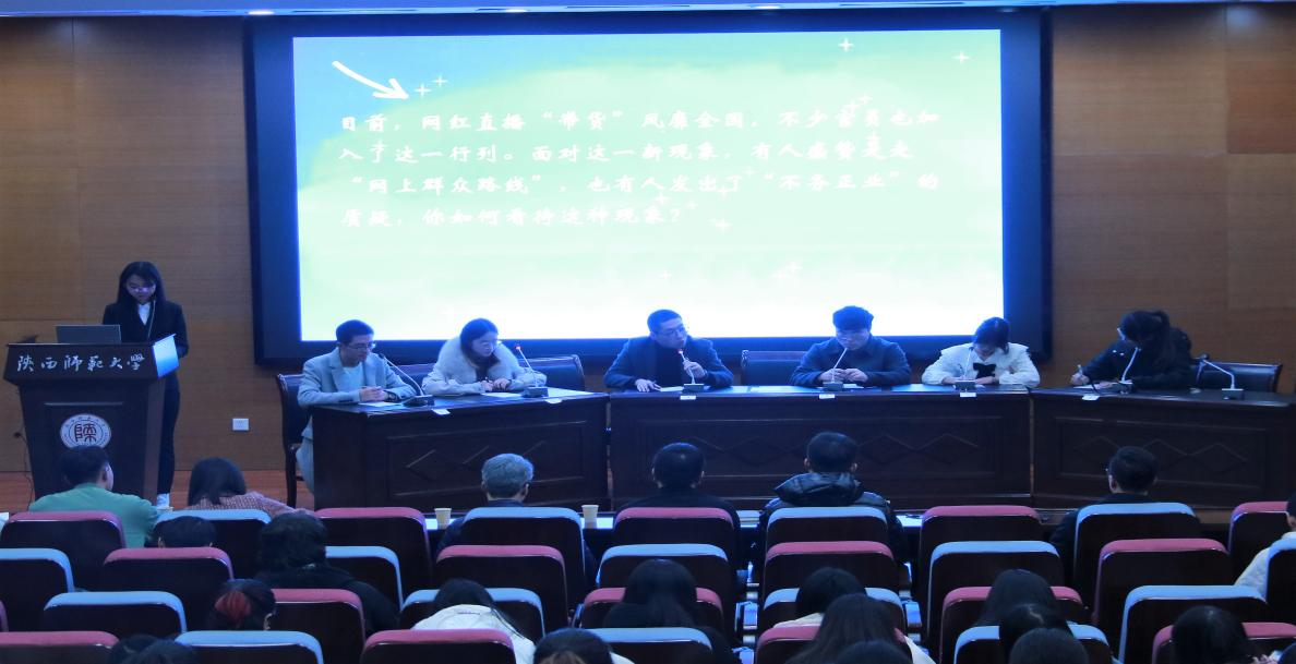 决赛由两个环节组成。第一个环节为无领导小组讨论决赛,题目为:人工AI虚拟主播是否能代替真人展开。十位选手条理清晰,语言流畅,据理力争,最终完美收场。第二个环节,由员工会及本科生第二党支部推选出的6位同学为大家带来了一场精彩的表演赛,题目为:官员网上直播带货是“走群众路线”还是“不务正业”?大家言辞犀利,现场气氛迅速升温,精彩不停,掌声不断。最后由评委李欣悦老师和吕东超老师点评,并为选手颁奖,活动在同学们热烈的掌声中圆满地落下帷幕。