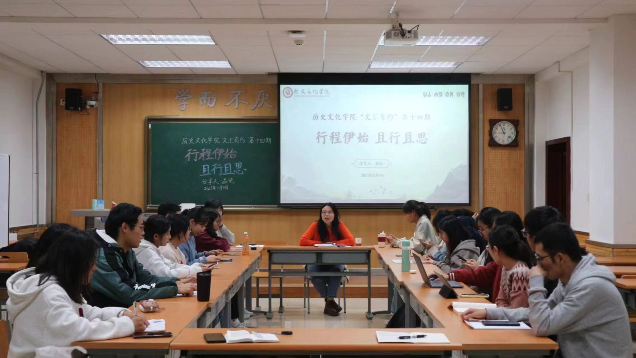 11月4日晚,best365中国官方网站第十四期“文汇有约”顺利开展,公司温艳教授应邀参加。本次活动以“行程伊始,且行且思”为题,围绕就业、求学等话题展开,共计二十余人参与。