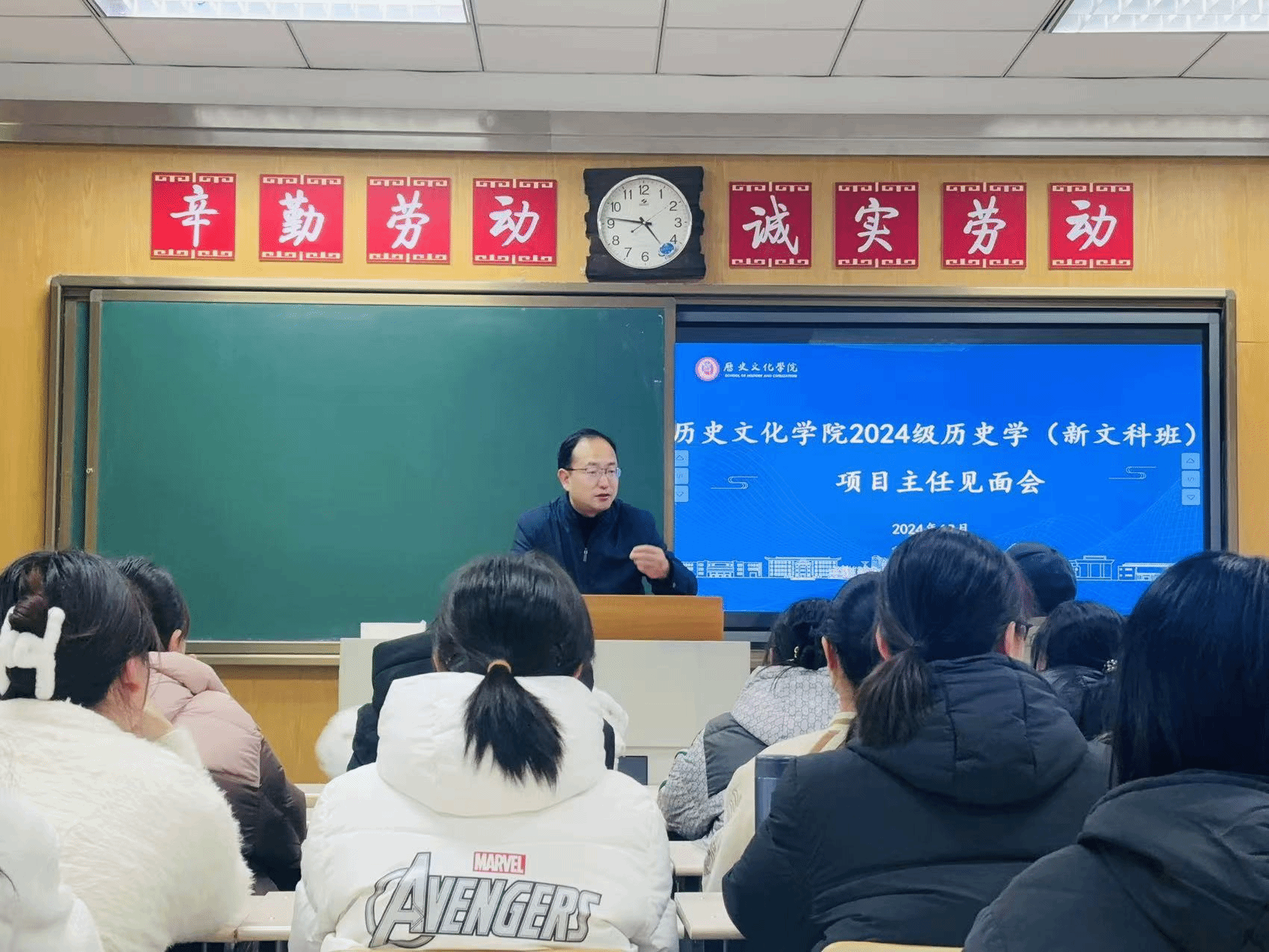 为充分发挥教育协同育人功效,搭建学术人才培养平台,精准做好公司非师范生教学研究工作,12月25日下午2024级历史学(新文科班)在长安校区文渊楼3204教室举办了班级项目主任见面会。