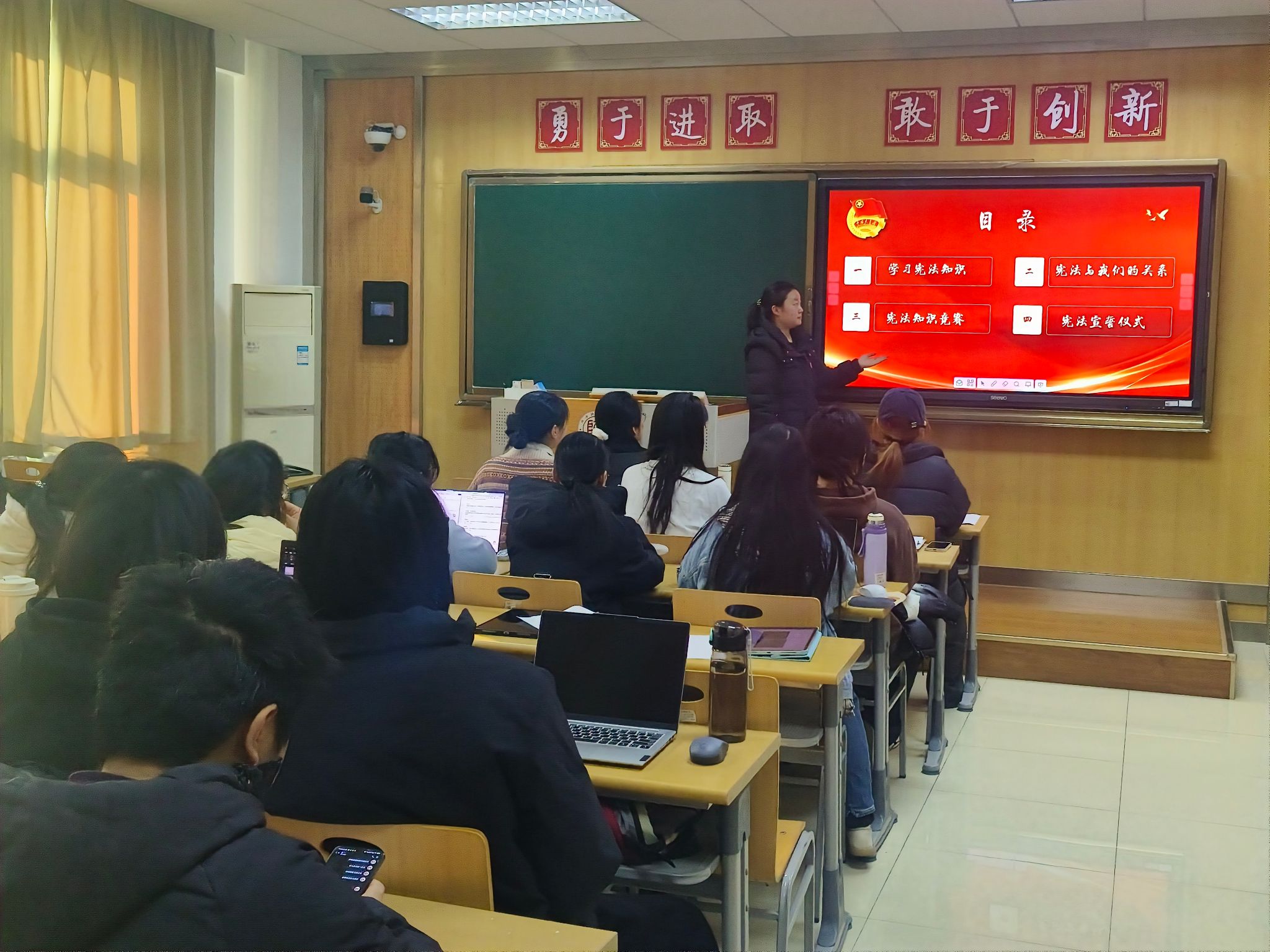 12月19日,2023级世界史班团支部开展“弘扬宪法精神 坚定制度自信”主题团日活动。团支部书记首先向支部成员介绍宪法的基本知识,增强支部成员对宪法的权威性认同,激发支部成员学习宪法的热情。在随后展开的主题讨论与宪法知识竞赛环节,支部成员积极参与,深入探讨宪法对人民生活的影响。本次团日活动增强支部成员对走中国特色社会主义法治道路重要意义的认识,激励支部成员弘扬法治精神、为法治社会建设贡献青春力量。