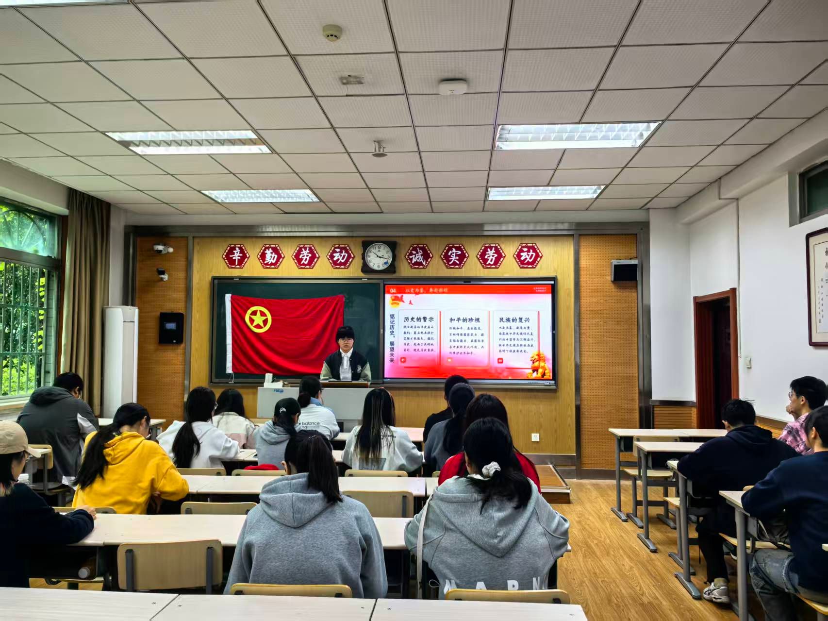 2025年9月23日,2024级历史学类新文科班团支部开展“铭记抗战千秋史”主题团日活动。活动伊始,团支部书记带领支部成员回顾14年抗战峥嵘岁月与新中国成立后的辉煌历程,深刻阐释抗战精神的时代价值。支部特邀史原星火宣讲团讲授《可爱的中国》,诵读与解读交织,进一步激发支部成员的爱国热情。本次团日活动以“回望”“赓续”与“奔赴”为主线,激励支部成员以实际行动传承抗战精神,将个人奋斗同国家命运紧紧联系在一起。