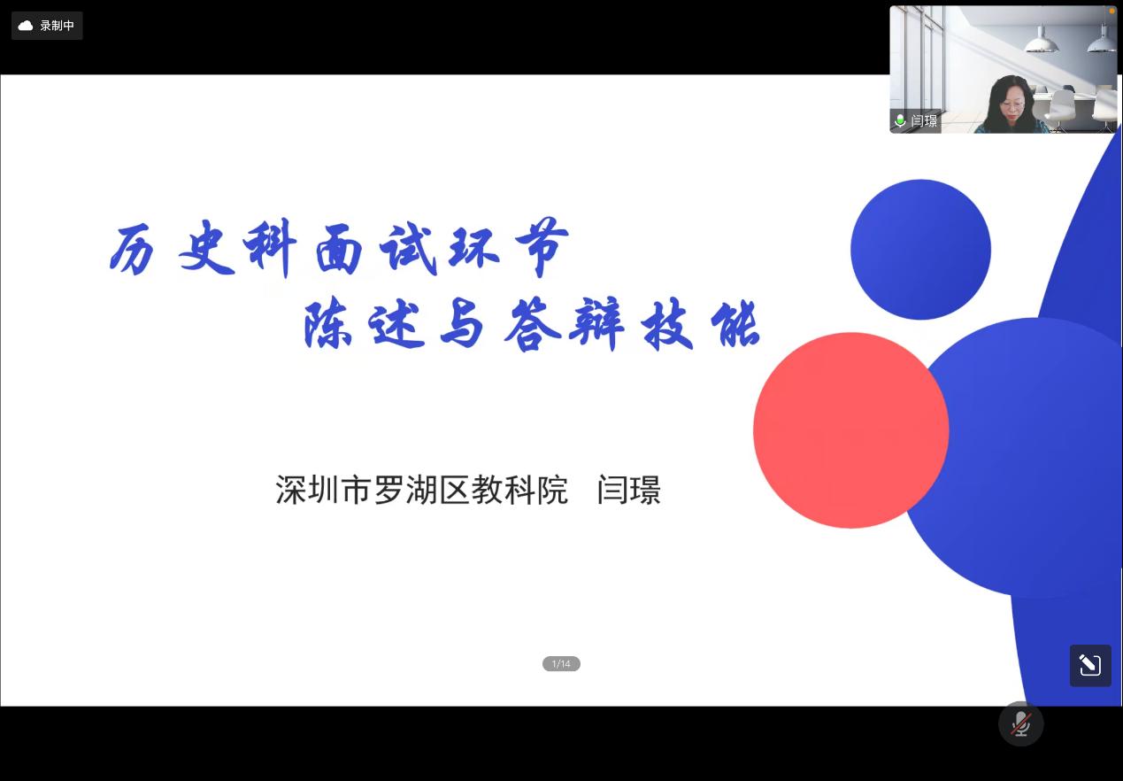 2022年11月9日上午,公司成功举办老员工教学技能提升训练营第六讲,深圳市罗湖区教科院教育科研管理中心主任、广东省学科带头人闫璟作题为《历史科面试环节的陈述和答辩技能》的报告,报告由蔡娜副教授主持,研究生辅导员马瑶以及我院本科生、研究生共213人参加。