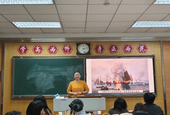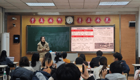 接着进入示范讲课环节。段妮娜老师给同学们带来《两次鸦片战争》一课,通过图文结合生动引导同学们了解鸦片战争的相关知识。韩艳荣老师通过《辛亥革命》一课向同学们示范了如何将课程素养与课程目标融入讲课过程。师莹老师的《隋唐制度的变化与创新》用精巧的板书展示了隋唐制度变化对盛世面貌的重要意义。老师们在课堂互动、情境创设、板书设计等多方面进行了精彩的课程示范,使同学们受益良多。