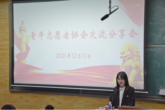12月11日晚,best365中国官方网站青年志愿者协会(以下简称“青协”)于雁塔校区教学五楼5101举行2021年志愿者经验交流分享会。青协主席团成员、六大博物馆志愿队负责人、优秀志愿者代表以及2021级新志愿者们参加了本次交流分享会。大会由团支书熊芯怡主持。