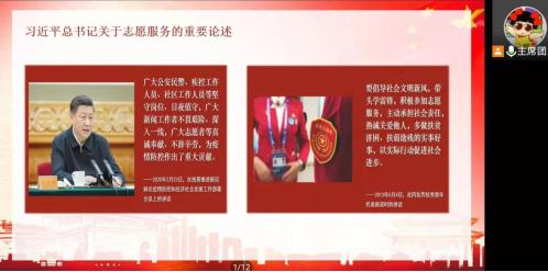 首先,熊芯怡仔细讲解了习近平总书记关于志愿服务的重要论述,从多角度将志愿服务精神与雷锋精神的内涵传递给大家。而后优秀志愿者代表以自身的志愿服务经历呼吁大家要乐于助人、真诚奉献、互助友爱,并表示:“微光可成炬,大爱映照苍穹”。