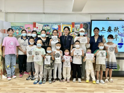 一方拓片,一段历史。古人持刀刻金石以志,今人执拓摹岁月波纹。子娟同学用生动的演示和讲解,再次将瓦当拓印的工艺与技术传授给小朋友们,当墨记如梅花点点般绽放于宣纸之上,古老瓦当的精细纹样重现在小朋友手中,当一幅幅承载着孩子们汗水与努力的瓦当拓印作品完成时,整个教室洋溢着难以言喻的幸福与成就感。