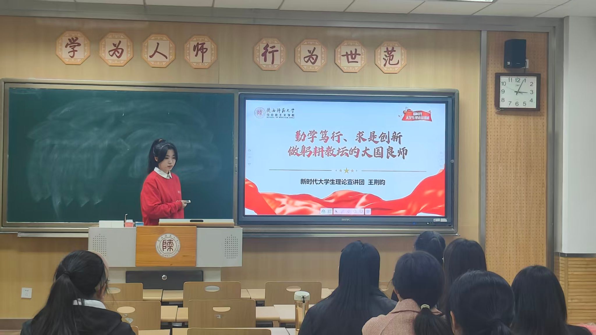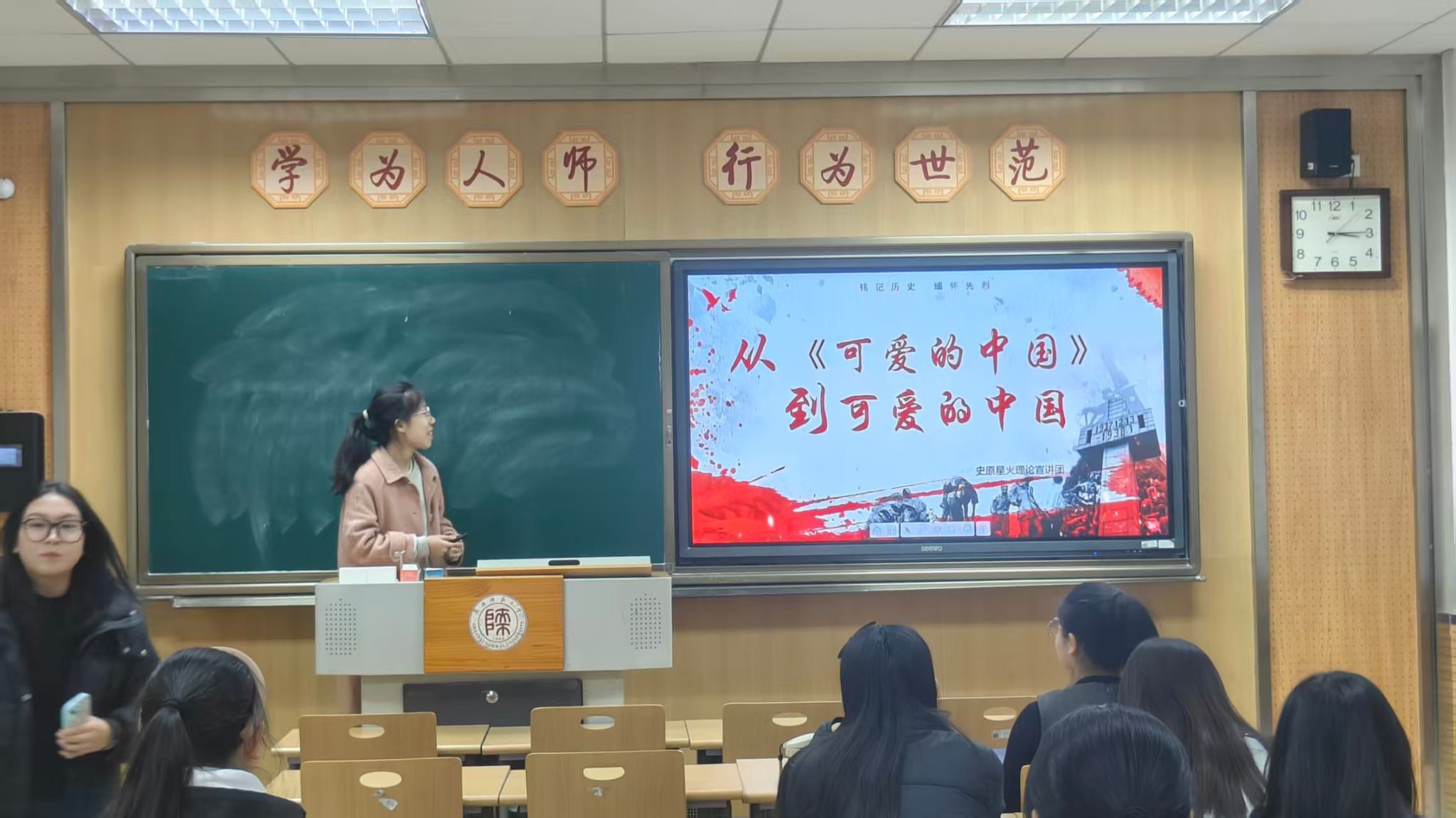 活动伊始,马克思主义公司新时代老员工理论宣讲团王荆昀同学围绕“教育家精神”进行了深入宣讲,阐释了新时代教育者的使命担当。接着,best365中国官方网站“史原星火”老员工理论宣讲团孙佳怡同学聚焦《可爱的中国》,深情讲述从方志敏烈士笔下的理想愿景到当今时代“可爱的中国”的生动实践与精神传承。