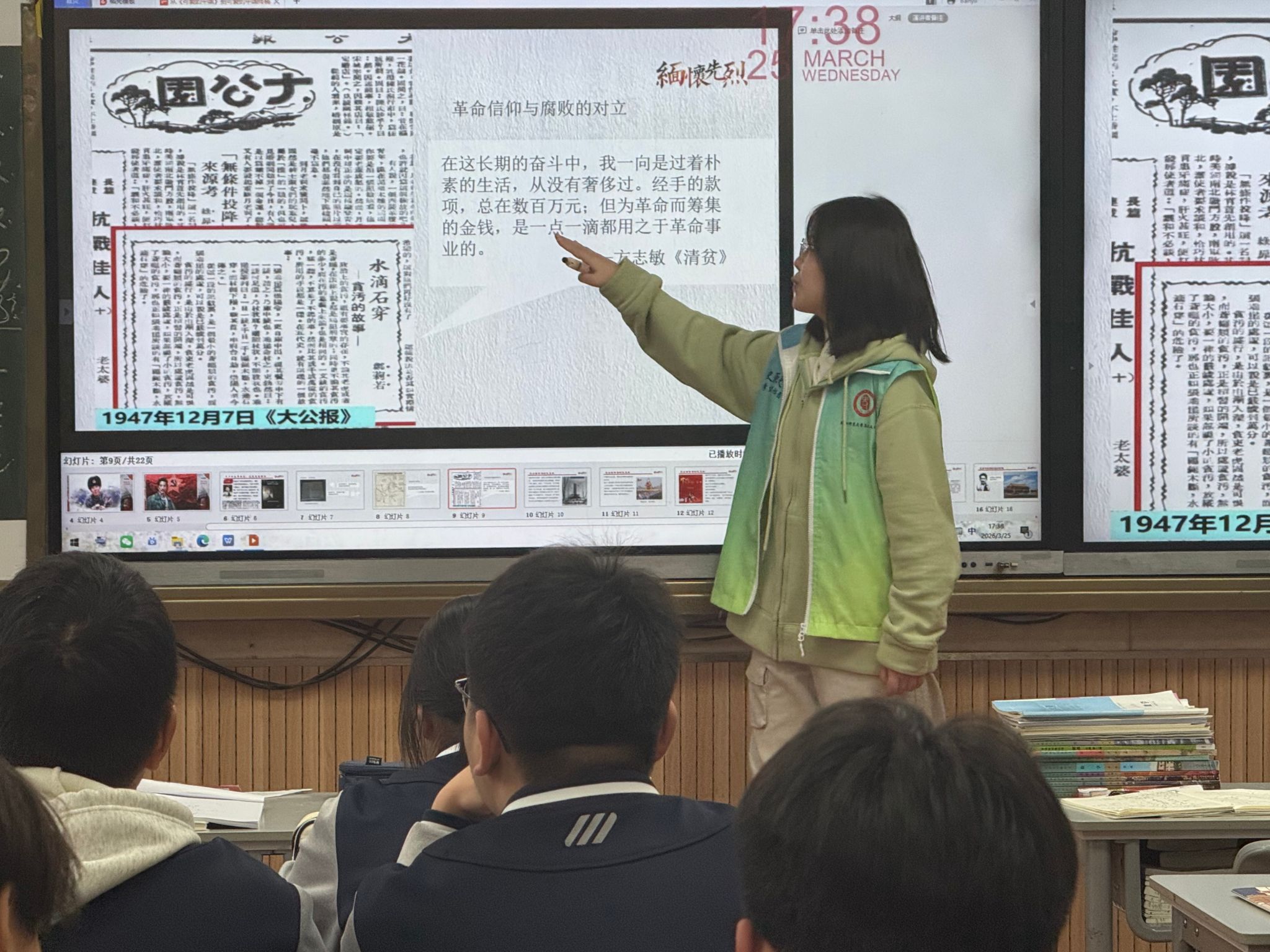 活动现场,陈航誉讲师以烈士纪念日与国庆节的内在联系为切入点,深情讲述方志敏烈士在狱中写下《可爱的中国》《清贫》等不朽篇章的故事。结合历史局势图与时代背景,还原那段风雨如晦的岁月。同学们听得专注认真,现场气氛庄重肃穆。