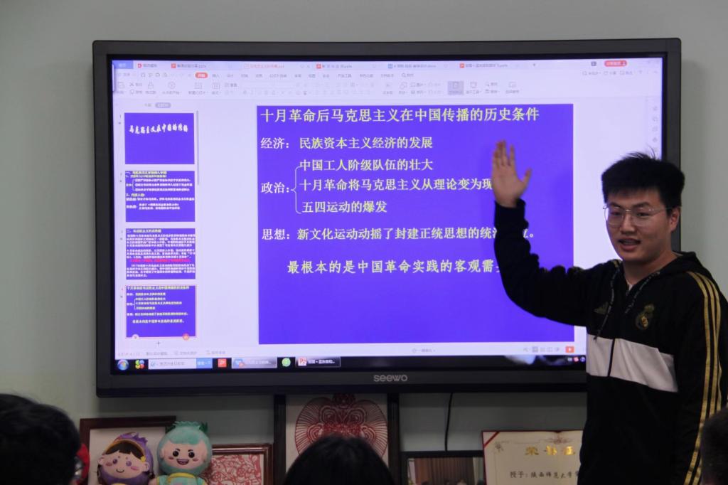 贺永业学长从“明晰教材知识,分析教材脉络”“依据课标要求,了解课程重难点”“明确课程目的,探索教学新趣”三个方面讲述备课环节的注意事项。贺永业学长说,在有限的课时中要将课程重难点讲精确明白,需要精读研读细读历史课程标准,理清教学思路和方法,同时注意课件设计内容的选择,在准确把握教学目标基础上,力图求“新”求“趣”,通过精心设计的课堂互动以及趣味化的讲课方式,有效调动员工的积极性和参与度,完成教学任务。