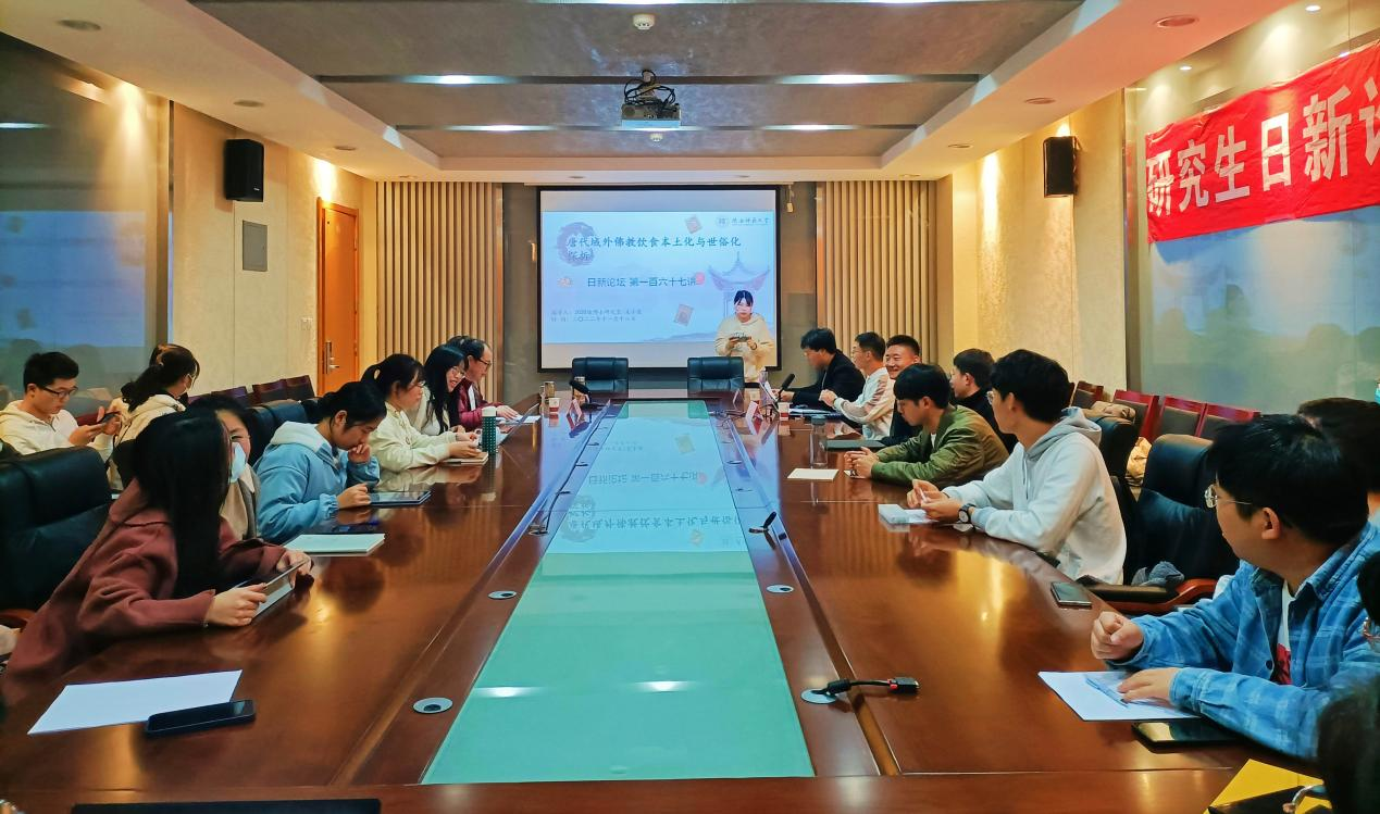 11月18日19点至21点,best365中国官方网站研究生“日新论坛”第一百六十七讲在长安校区文汇楼C段424会议室顺利举办。本次论坛邀请到了2020级中国史博士研究生吴小龙做了题为《唐代域外佛教饮食本土化与世俗化探析》的报告。公司王双怀教授及2022级博士研究生宝乐尔进行评议。论坛由研究生会学术部干事王禹淇主持。
