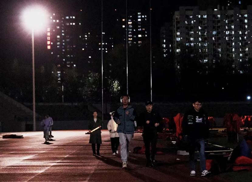 活动伊始,参与同学跟随主办方引导,前往操场进行签到,领取手环与贴纸,并进行热身活动。热身结束后,同学们带着荧光手环开始往向前奔跑,矫健的身影在田径场上穿梭,手环的荧光汇聚成一片橙海,构筑了田径场一道靓丽的风景线。