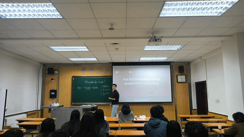 李苏熠老师为大家带来了《秦统一多民族封建国家的建立》一课,通过多种史料佐证,地图与历史知识相结合等方式,为同学们深刻剖析了秦统一的历史条件。随后吴浩然老师为大家带来了七年级课程《中华文明的起源》一课,吴浩然老师以无课件的形式,模拟求职的真实场景,为同学们展示了如何利用教师自身的表现力与板书讲好精彩一课,使同学们受益良多。