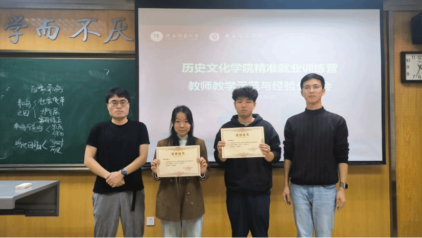 两位同学展示完毕后,在王依萍的主持下,由李苏熠与吴浩然两位老师为今天进行展示的同学颁发奖状,并合影留念。