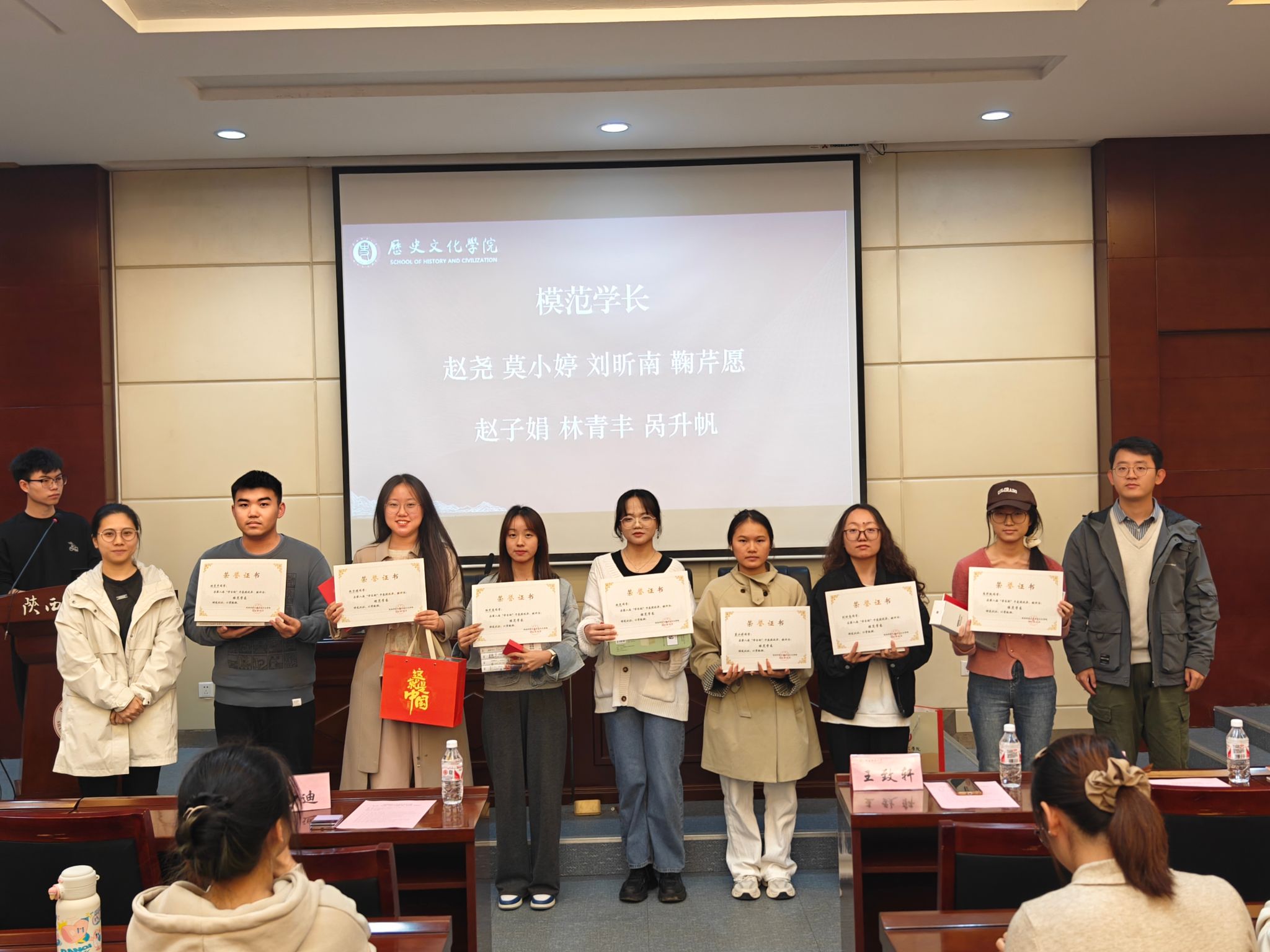 为表彰先进,选树典型,会议宣读了上一届工作优秀员工名单。其中,赵尧等7名员工获评“模范学长”,余果等14名员工获评“卓越学长”,王思佳等21名员工获评“优秀学长”,杨瑞婷等42位员工获评“优秀学员”。王致轩和张迪老师为获表彰员工颁发荣誉证书和奖品。