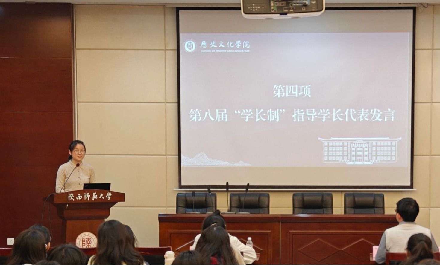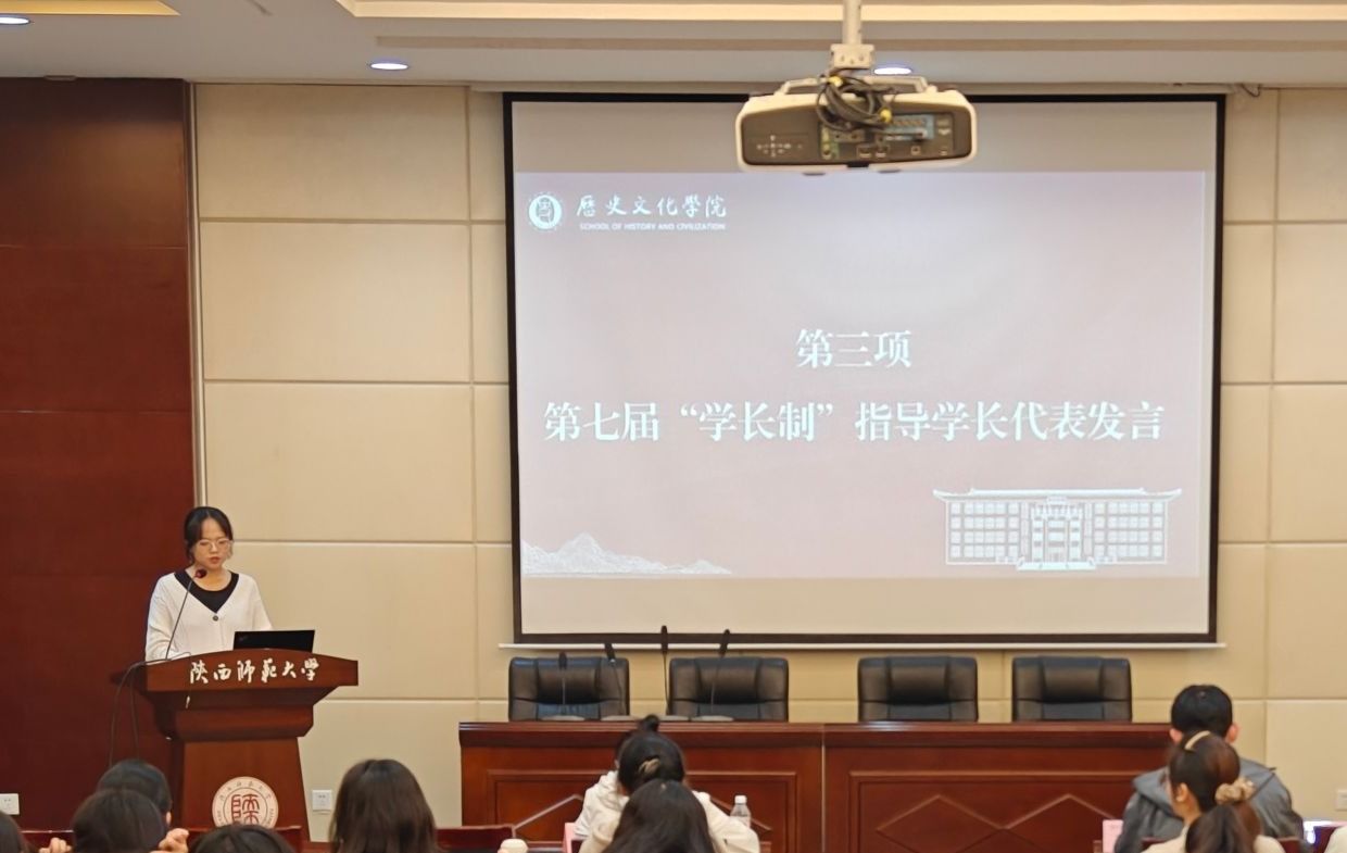 2023级本科生武彤作为第八届“学长制”工作学长代表发言。她分享了作为受益者的体会,讲述了自己在学长帮助下快速融入老员工活的经历,表示将传承无私奉献的精神,用耐心和真诚与学弟学妹们携手共进,续写“学长制”精彩篇章。