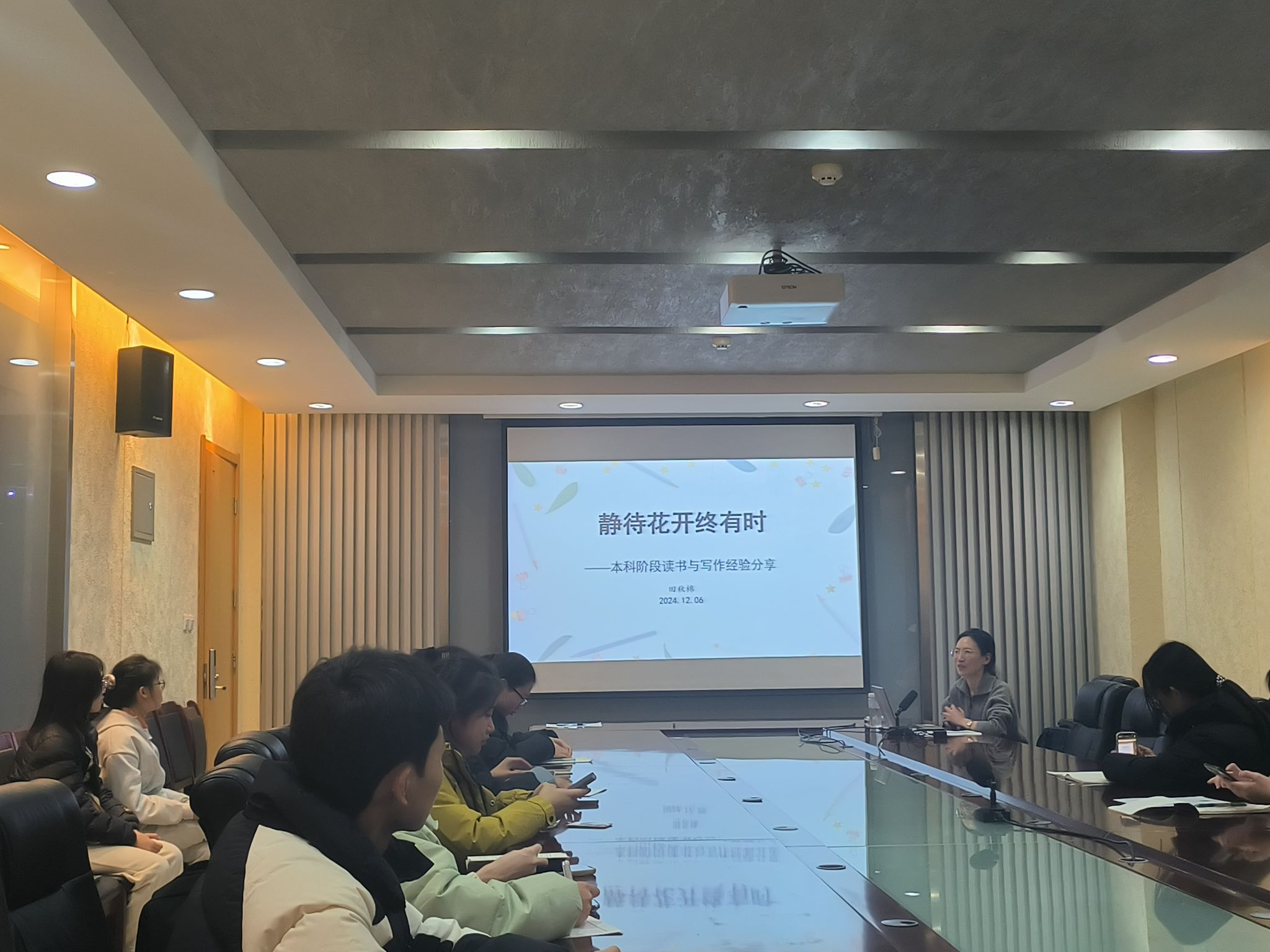 活动伊始,田秋棉老师以个人求学历程为例,点出明确志趣与提前规划的重要性,提出要发挥榜样的作用、兴趣贵在培养,并鼓励同学们“凡事预则立,无惧走弯路”。田秋棉老师格外重视阅读,讲究精读与泛读相结合,做到以约驭博,以历史重点书籍、基本典籍、原始史料等打好“书底”,同时通过泛读拓展研究视野,关注学术前沿,培养质疑精神。对于论文写作,田老师讲述了选题、写作、完善的方法,强调选题应以小见大,有延展性,谋篇布局与遣词造句有逻辑性,无固定模式,关键要勤写勤练勤修改。