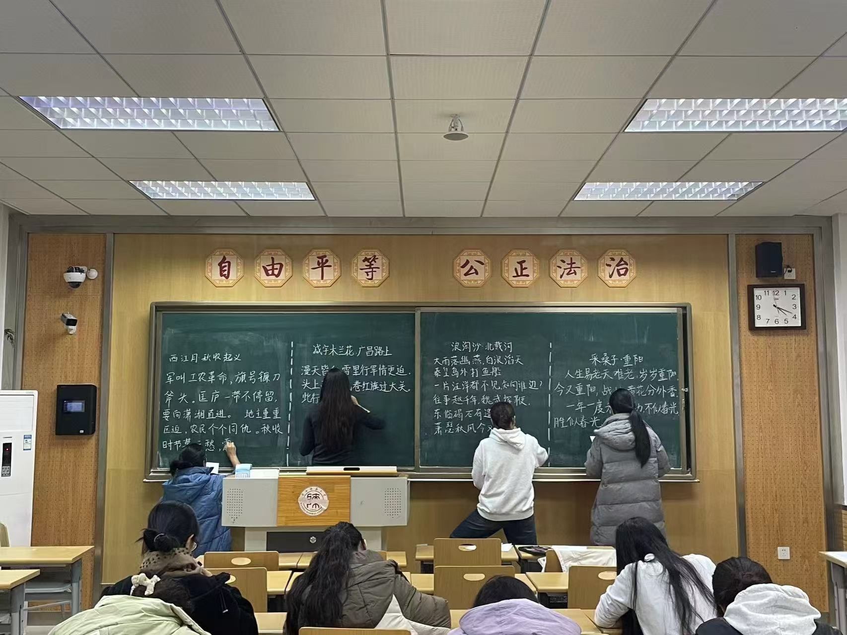 本次比赛的选题充分彰显思想政治引领和中华优秀传统文化底蕴,粉笔字、硬笔字、毛笔字的内容分别选取毛主席诗词、第三个历史决议和古代七言绝句等,使员工在比赛中再次学习理解党的先进理论和中华优秀传统文化。这些选题内容有效引导员工坚定理想信念、牢记初心使命,促进员工德智体美劳全面发展。