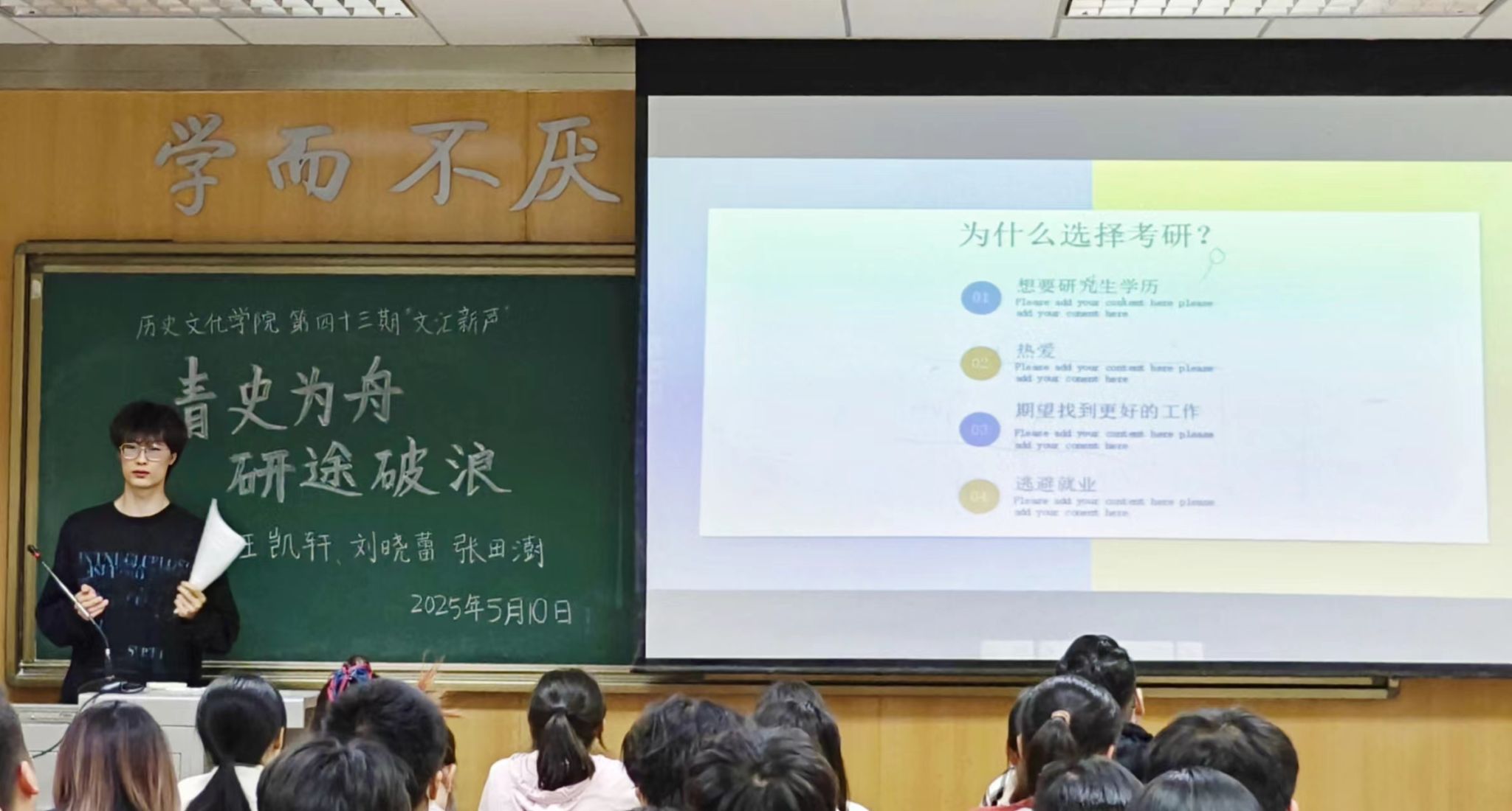 本次“文汇新声”活动助力同学们明确中国史、世界史专业的考研目标,掌握科学备考方法,为逐梦研途奠定坚实基础。
