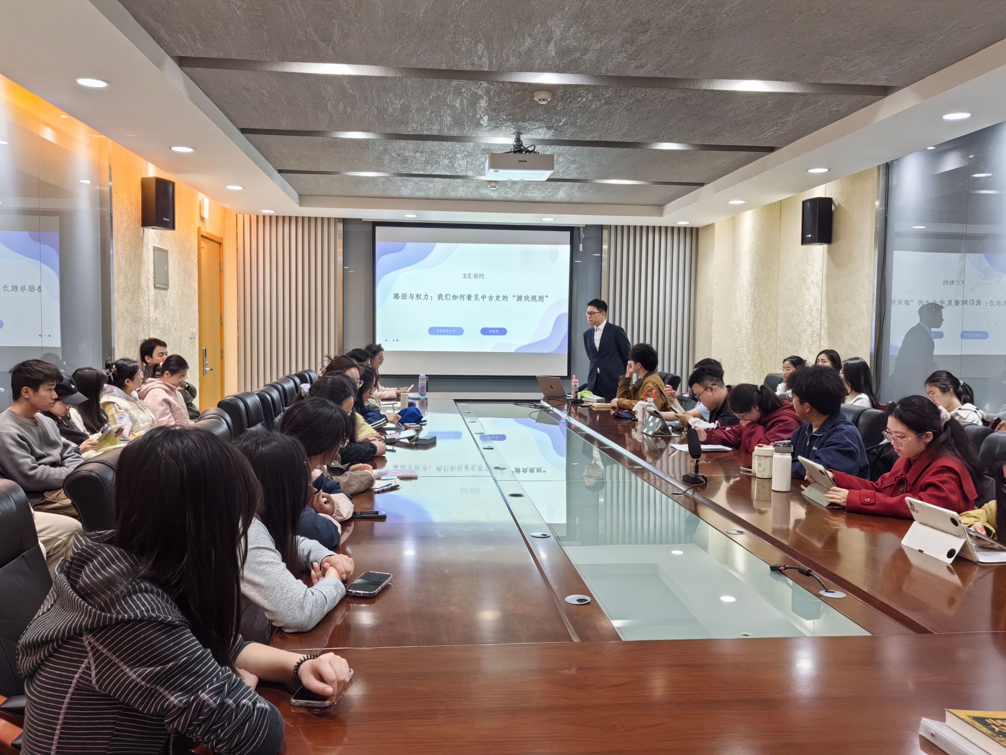 3月28日晚,best365中国官方网站第四十五期“文汇有约”活动于文汇楼424会议室举行,公司刘竣承老师应邀参加。本次活动围绕“路径、技艺与范式的演进——我们如何看见中古史的‘游戏规则’”展开,吸引了众多本科生参与。