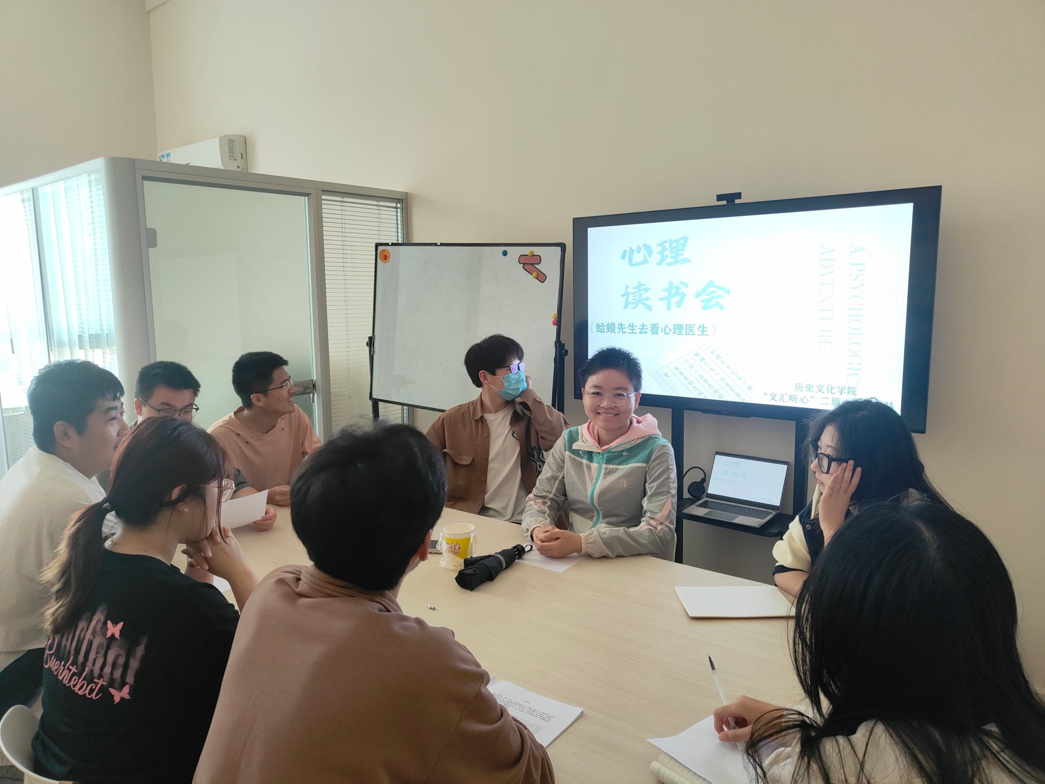 本次读书会的阅读书目为英国著名心理咨询师罗巴特著《蛤蟆先生去看心理医生》,同学们在现场首先分享了自己的阅读心得和想要交流的问题,随后就“原生家庭”“认识自我”以及如何更好的学习心理学知识等主要话题进行了讨论。同学们结合自身经历和感受踊跃发言,活动现场气氛热烈而轻松。