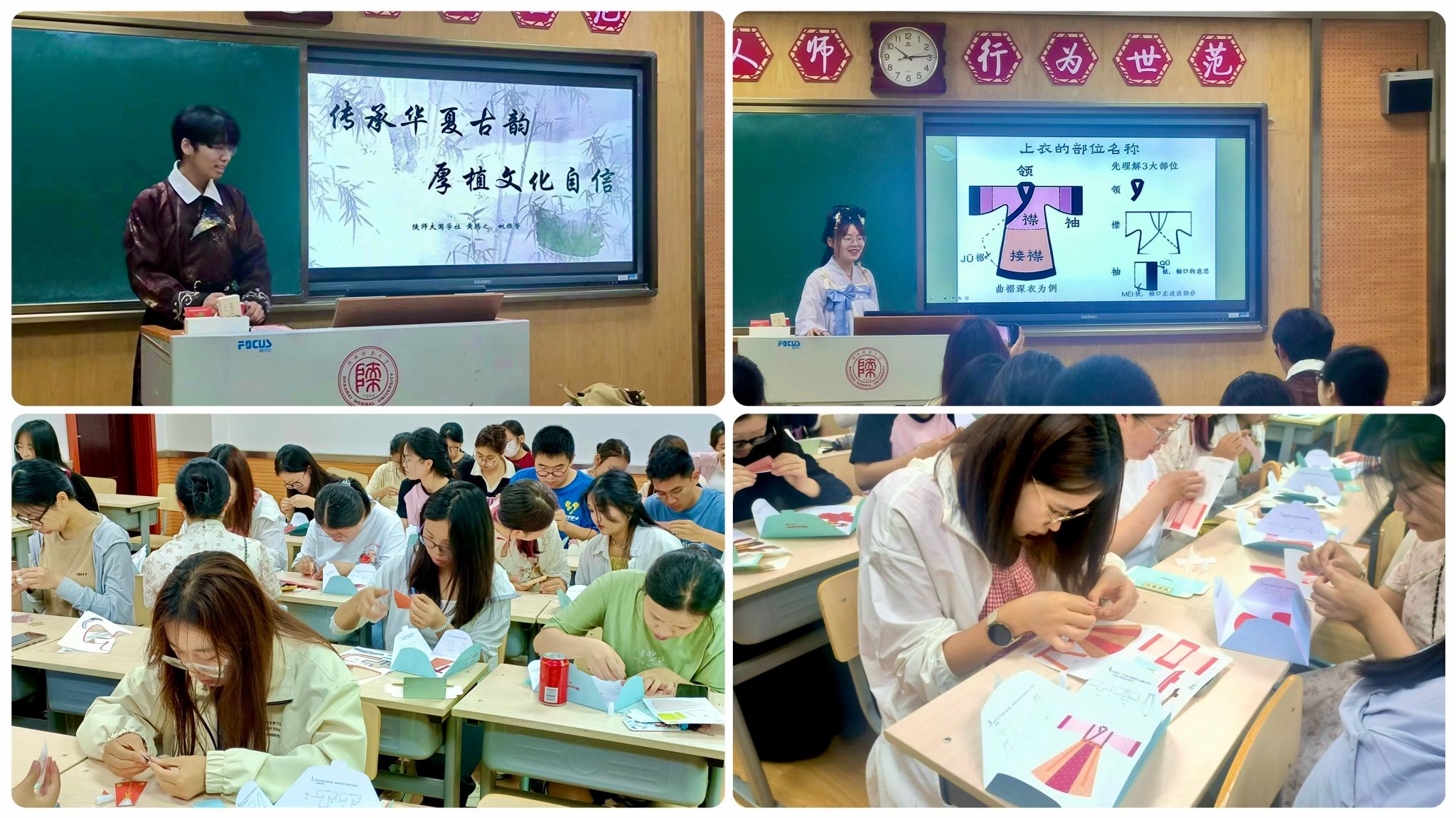 活动伊始,国学社的同学们向大家介绍了汉服的基础知识。他们从历史渊源、款式分类、文化内涵等多个角度,为大家呈现了汉服这一中华民族传统服饰的丰富内涵和深厚底蕴。